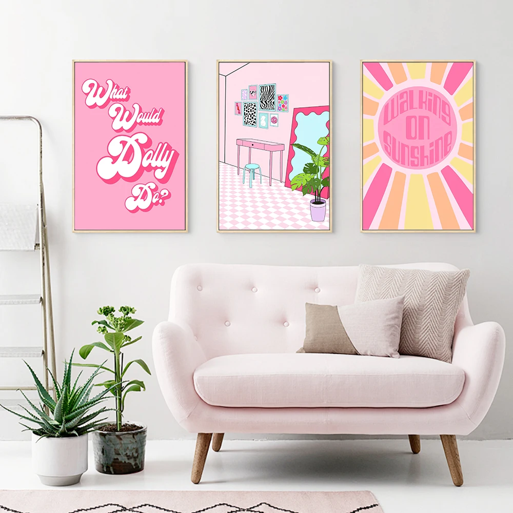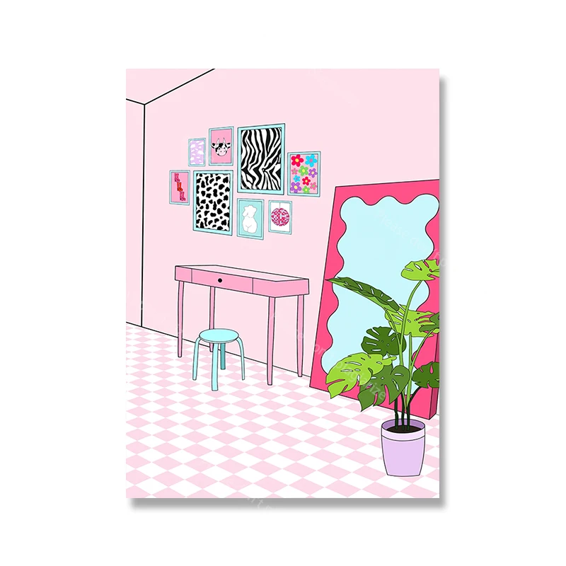Ретро Модный розовый постер для ногтей в стиле 90-х годов печать Со...