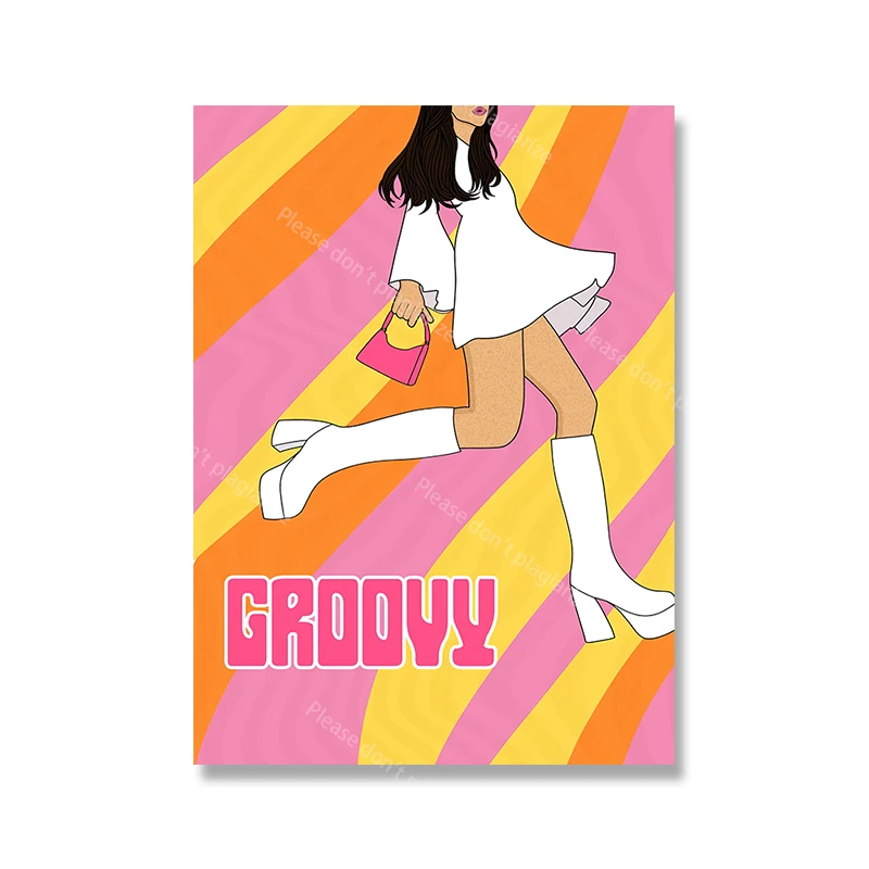 70s Цветочная ваза Ретро настенный постер Groovy Sway Художественна...