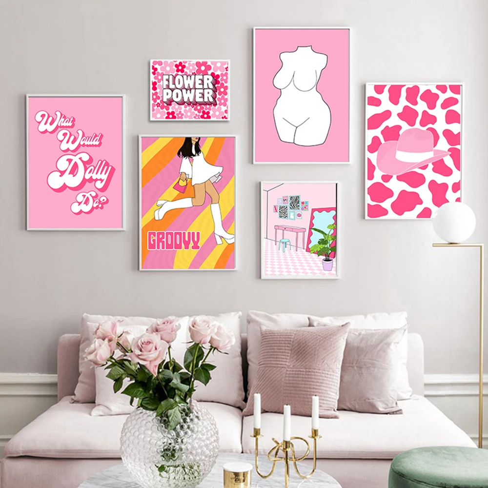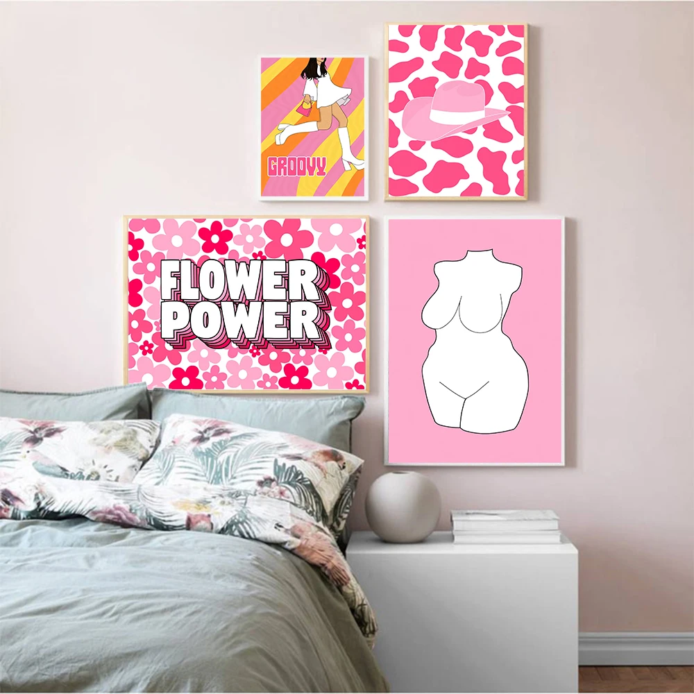 Плакат на стену в стиле ретро 70-х, модная фигурка тела, веселая ковбойская шляпа, Картина на холсте, феминистский цветок, Power, для кровати, комнаты, домашний декор