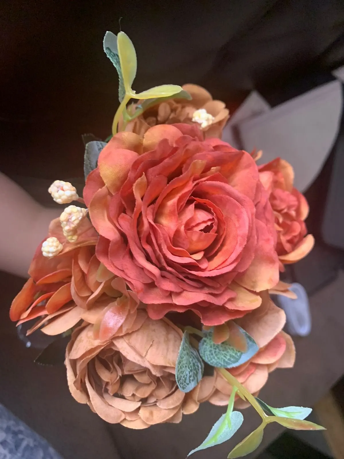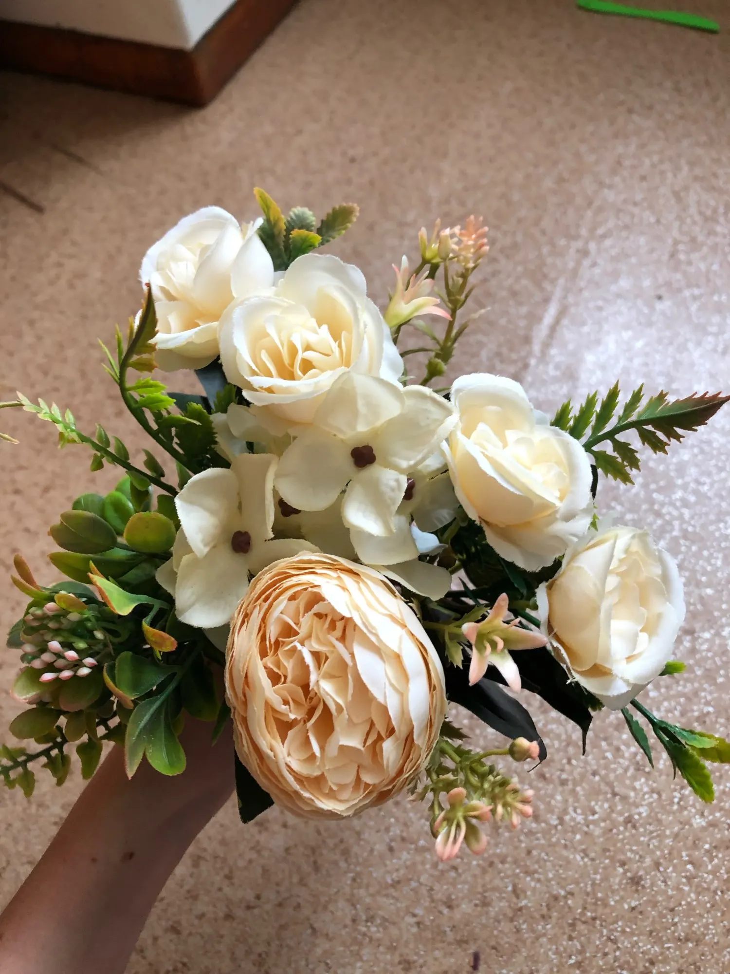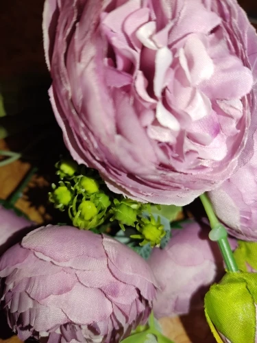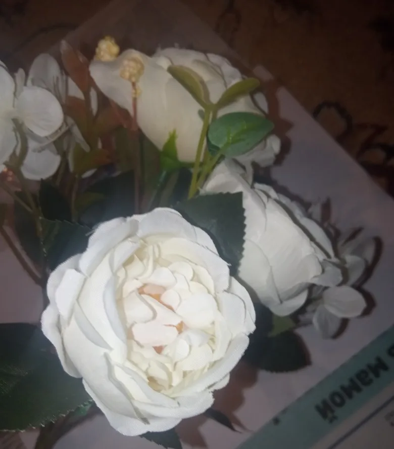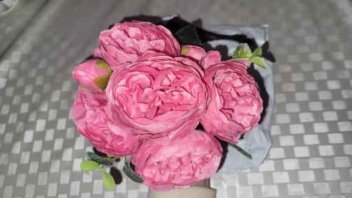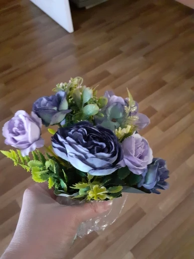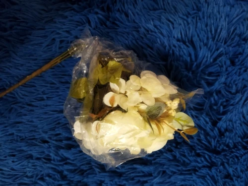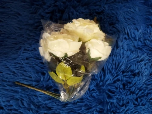 Красивый букетик. размер как указан. Единственный момент у букетика имеются ,как из пенопласта отдающие в желтизну , их буду перекрашивать. Внутри бутончика имеется жёлтая вставочка из материала, как сердцевина у настоящего цветка. А так букетик пышный, аккуратный. Продавец отправил быстро. Пришел букетик быстро.