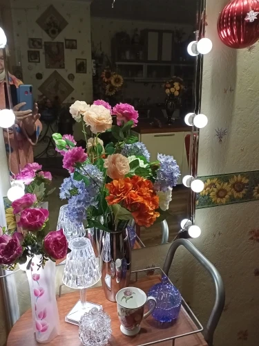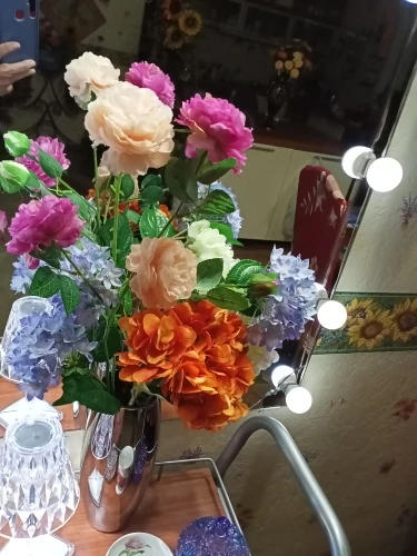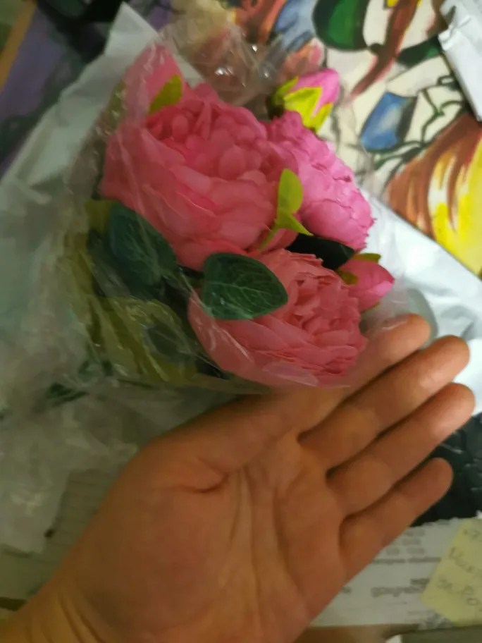 Товар соответствует описанию и изображению. Просто маленькая квартира, мои цветы прибыли в очень маленькую коробочку с сложенным стержнем, который ухудшил букет.