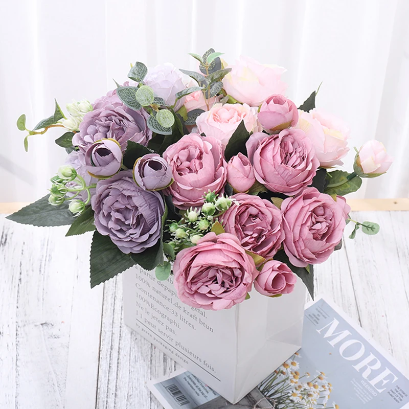 Разнообразные искусственные розы, шелковые цветы, пион, Гортензия, Свадебный букет невесты, товары вечерние Ринок, Цветочная композиция для дома, гостиной