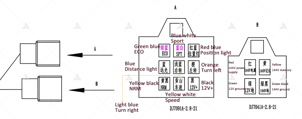 Примечания:Если Спидометр старого типа совпадает с контроллером серии Kelly KLS, индикатор NRM не может отображаться. Потому что сигнальный провод для контроллера серии KLS включен с 12 В (спидометр включен с заземлением).