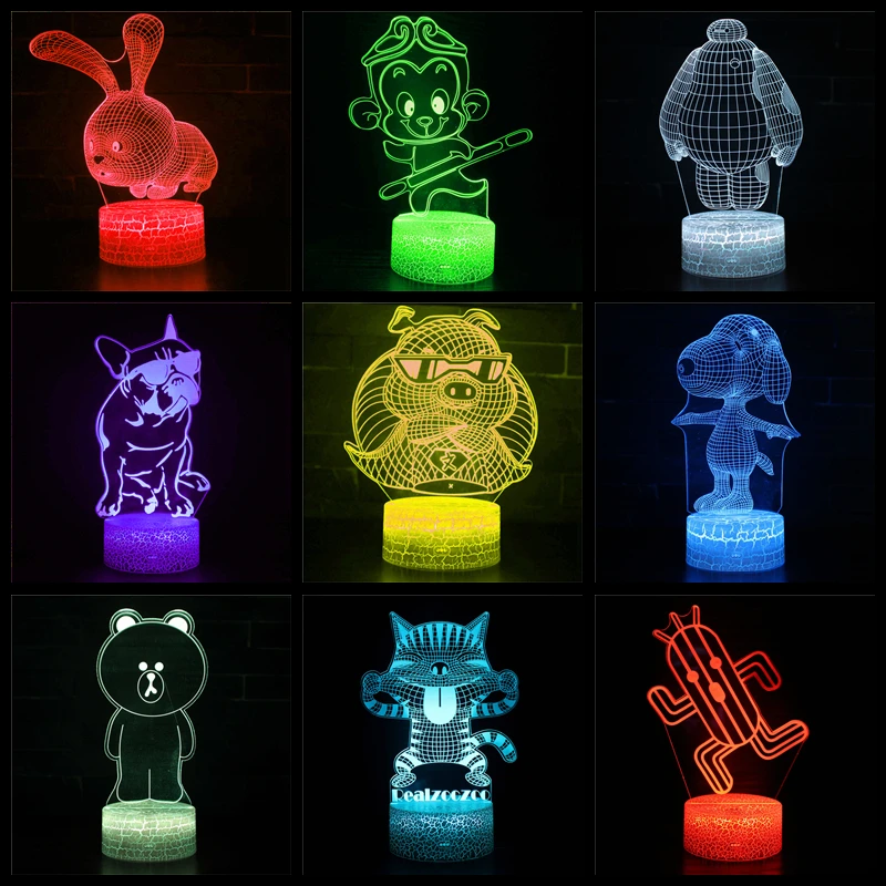 Светодиодный ночсветильник с милыми аниме животными, кактусами, игрушка для детей, мужчин и женщин, украшение для спальни, настольная лампа 3D, Праздничный Рождественский подарок