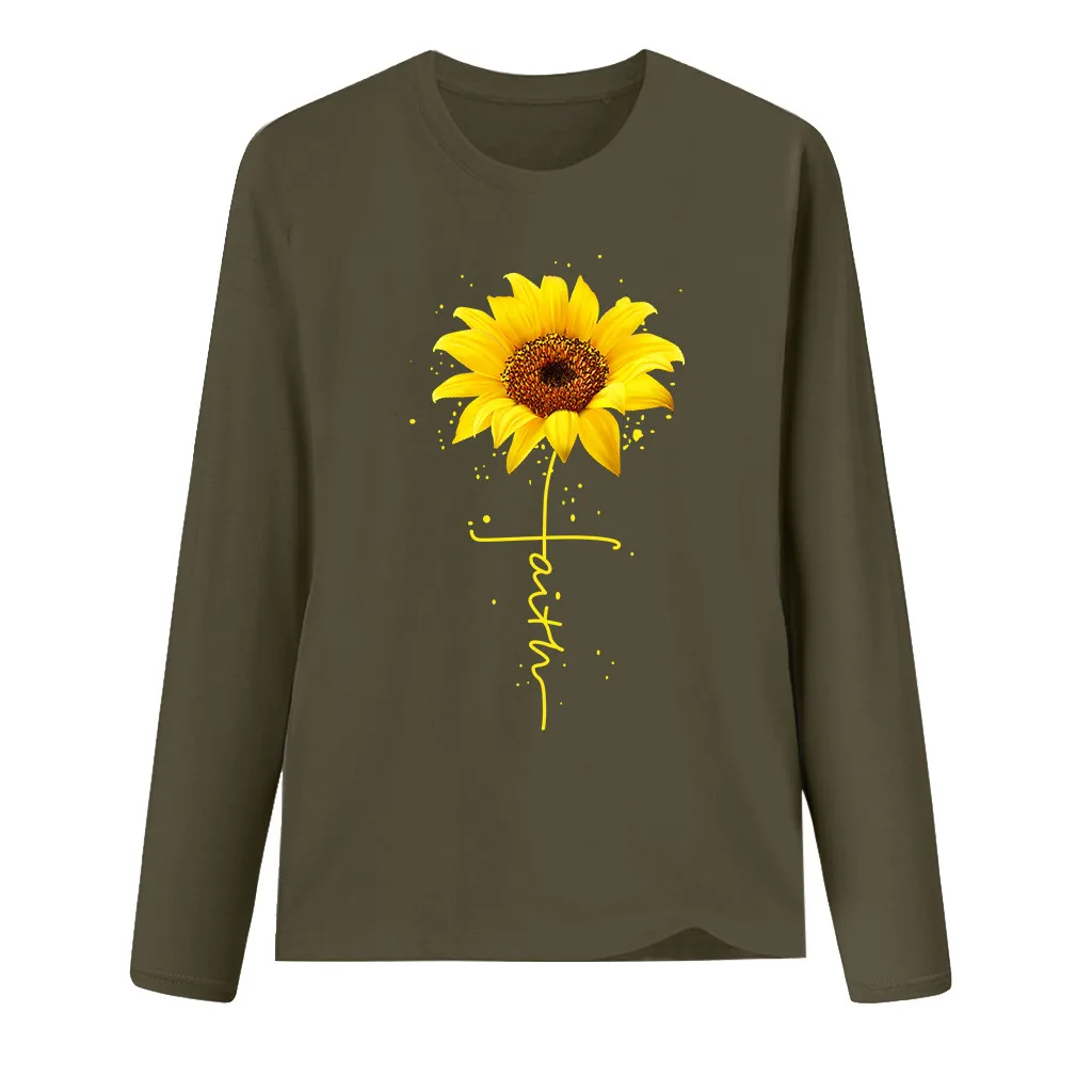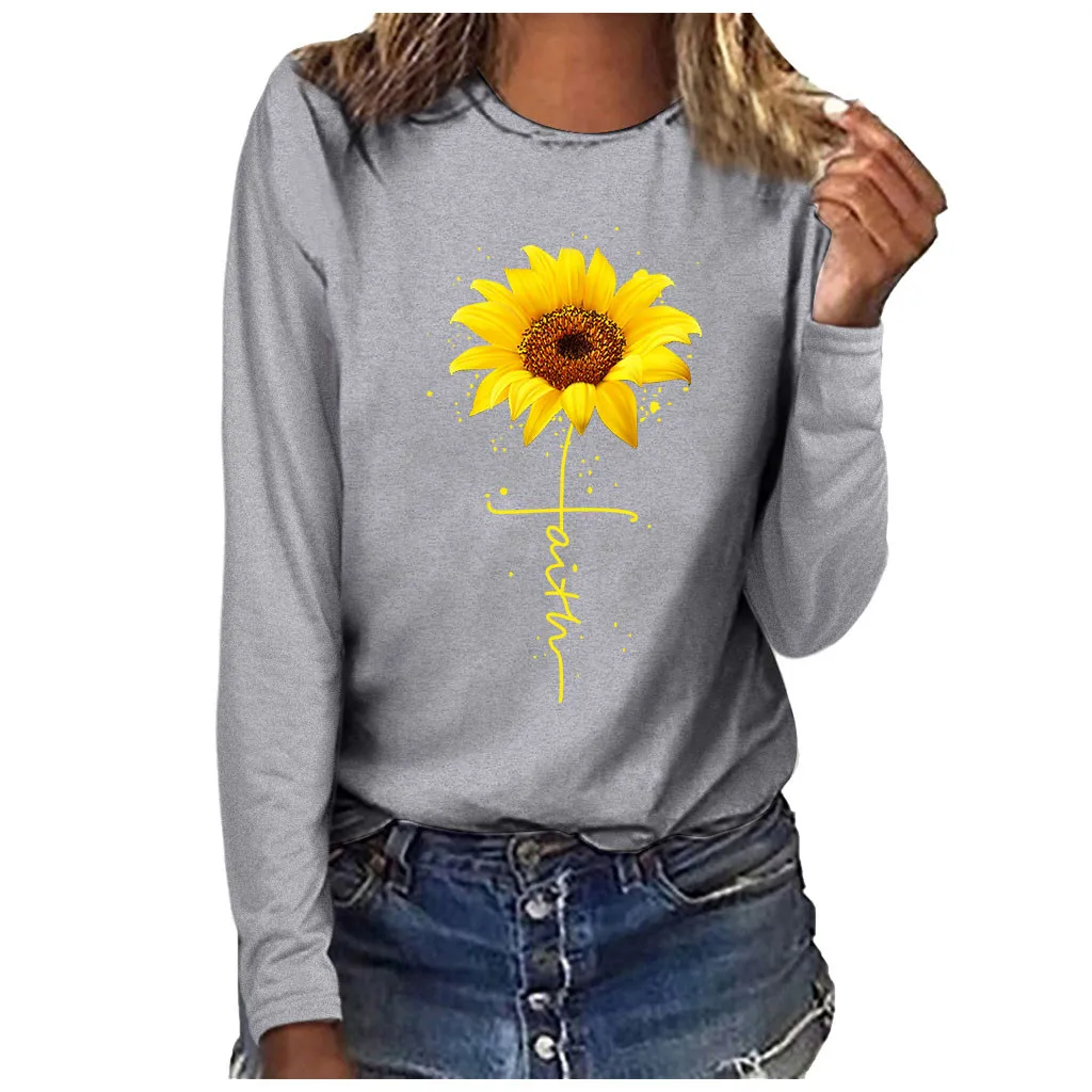 Женская мода размера плюс футболка с круглым вырезом и длинными рукавами