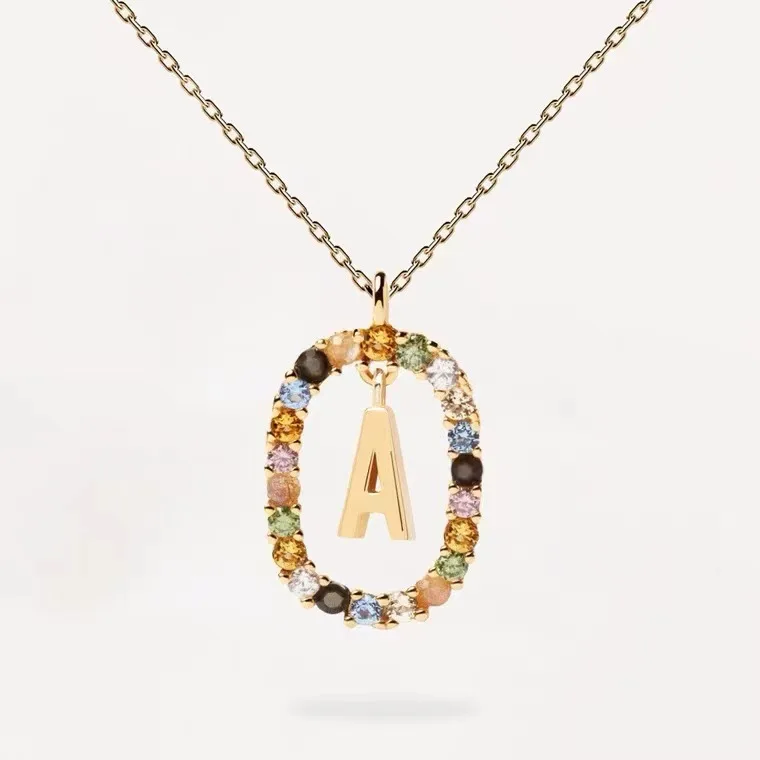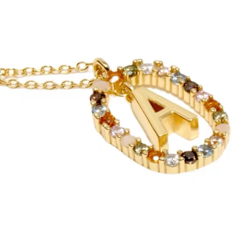 Цепочка с буквами A - Z Initial M S C K, длинное ожерелье с разноцветным цирконием, подвеска с буквами из 18-каратного золота