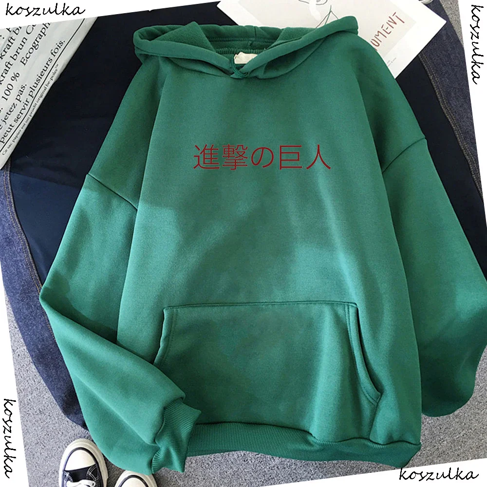 Толстовка Xfhh с длинным рукавом и аниме-принтом, уличная одежда 2021 с капюшоном атака на, Свитшот в стиле Харадзюку, Женская Спортивная толстовка унисекс, зеленые Топы G1