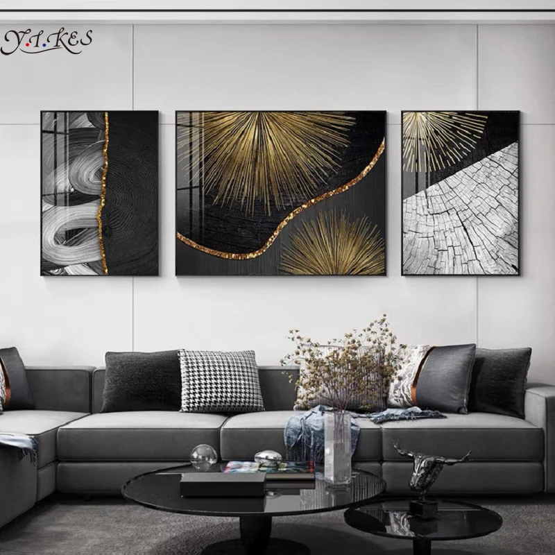 Скандинавская черно-белая Золотая Картина на холсте с текстурой древесины настенные постеры и принты для гостиной домашний декор Абстрактные Художественные фрески