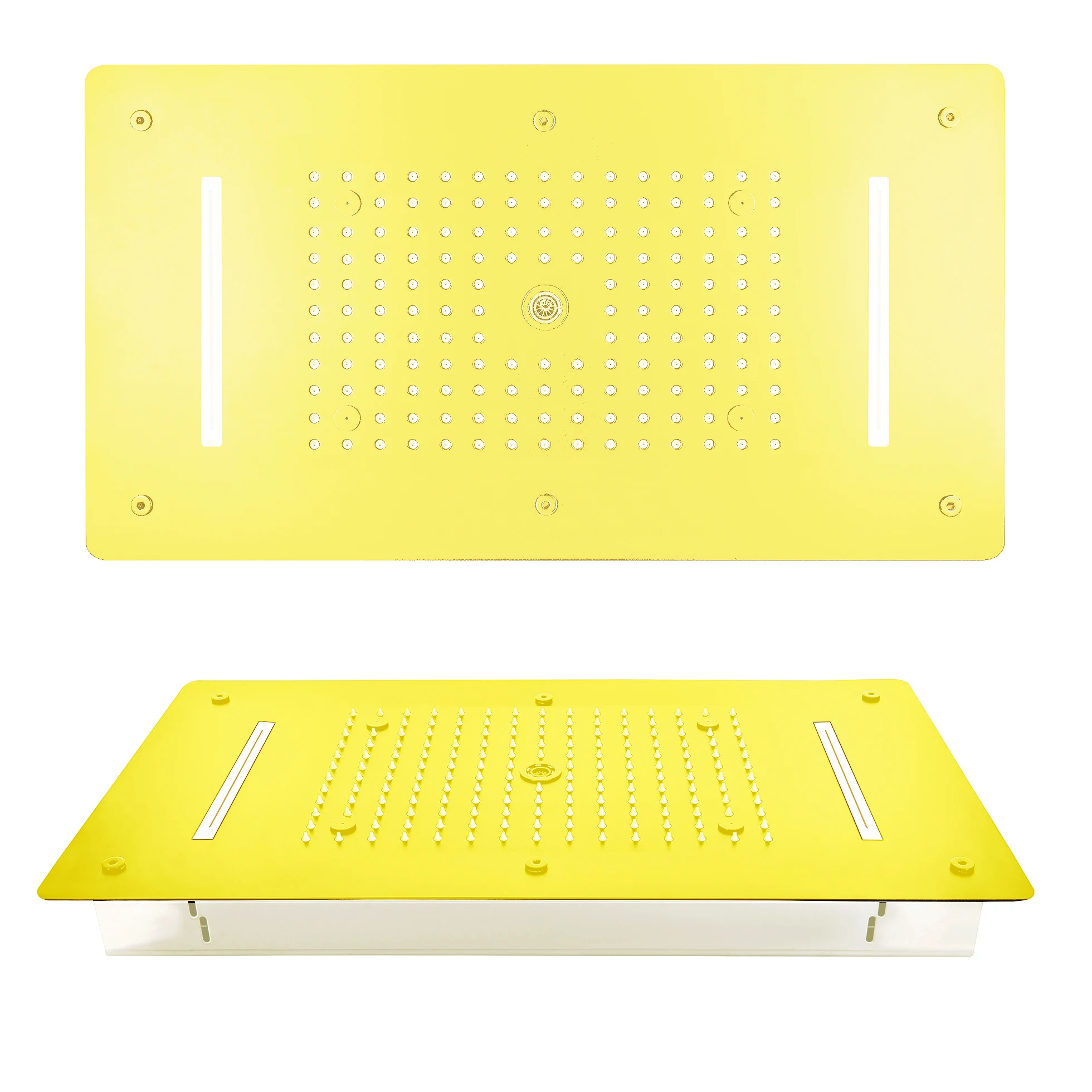 1.Описание насадки для душа: она изготовлена из SUS304 и матового золота, Размер 700x380 мм, есть 4 функции включает в себя: дожди, водопад, пузырь и туман, И роскошный светодиодный светильник. Он был скрыт, когда мы его устанавливали,