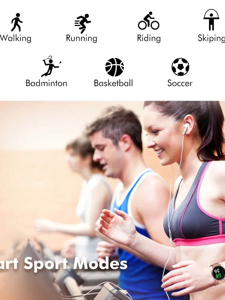● Поддержка сигнализации, питья воды, сидения, звонков, SMS (сообщения, QQ, Wechat, Skype, Facebook, Twitter, Line, Whatsapp), напоминания о потере. Часы будут напоминать вам вибрацию.