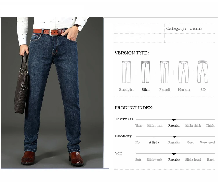 Мужские классические джинсы, эластичные Стрейчевые тонкие джинсы в ...