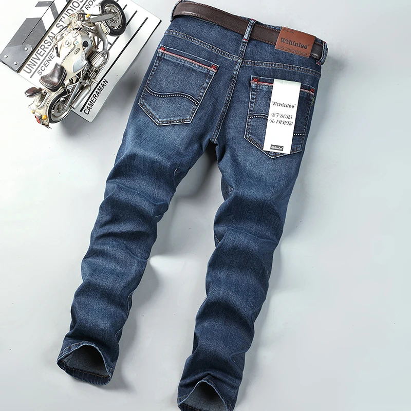 Мужские прямые джинсы, синие повседневные эластичные брюки из деним...