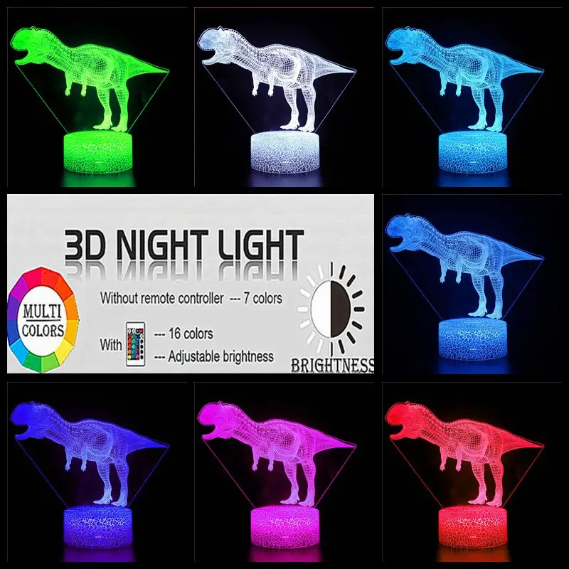 СВЕТОДИОДНЫЙ ночник в виде животного для динозавра, 7 цветов, подходящий для украшения дома, удивисветильник льник с оптической иллюзией