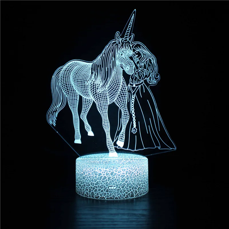 Аниме мультфильм для принцессы девочки и единорога Модель 3D ночник USB светильник льник для свадьбы бойфренда и девушки подарок на день рождения