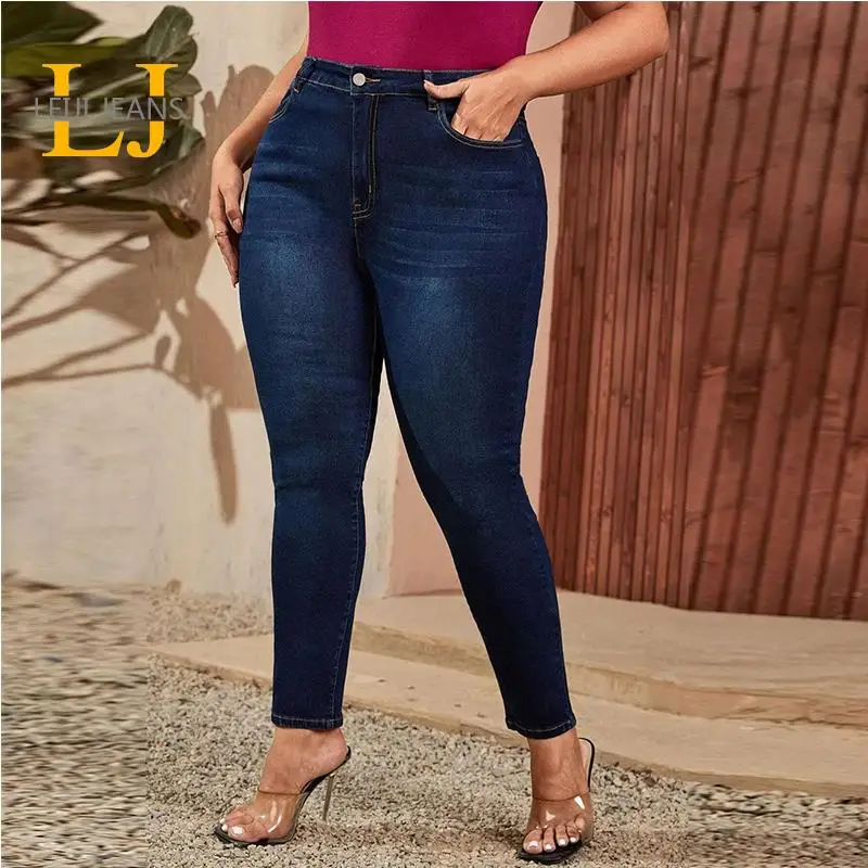 LEIJIJEANS 2022 для женщин, джинсы для мам, джинсы с высокой талией, джинсы больших размеров, эластичные Стрейчевые джинсы, 100 кг, потертые джинсы, узкие брюки-карандаш