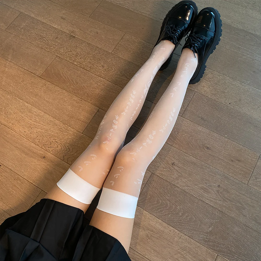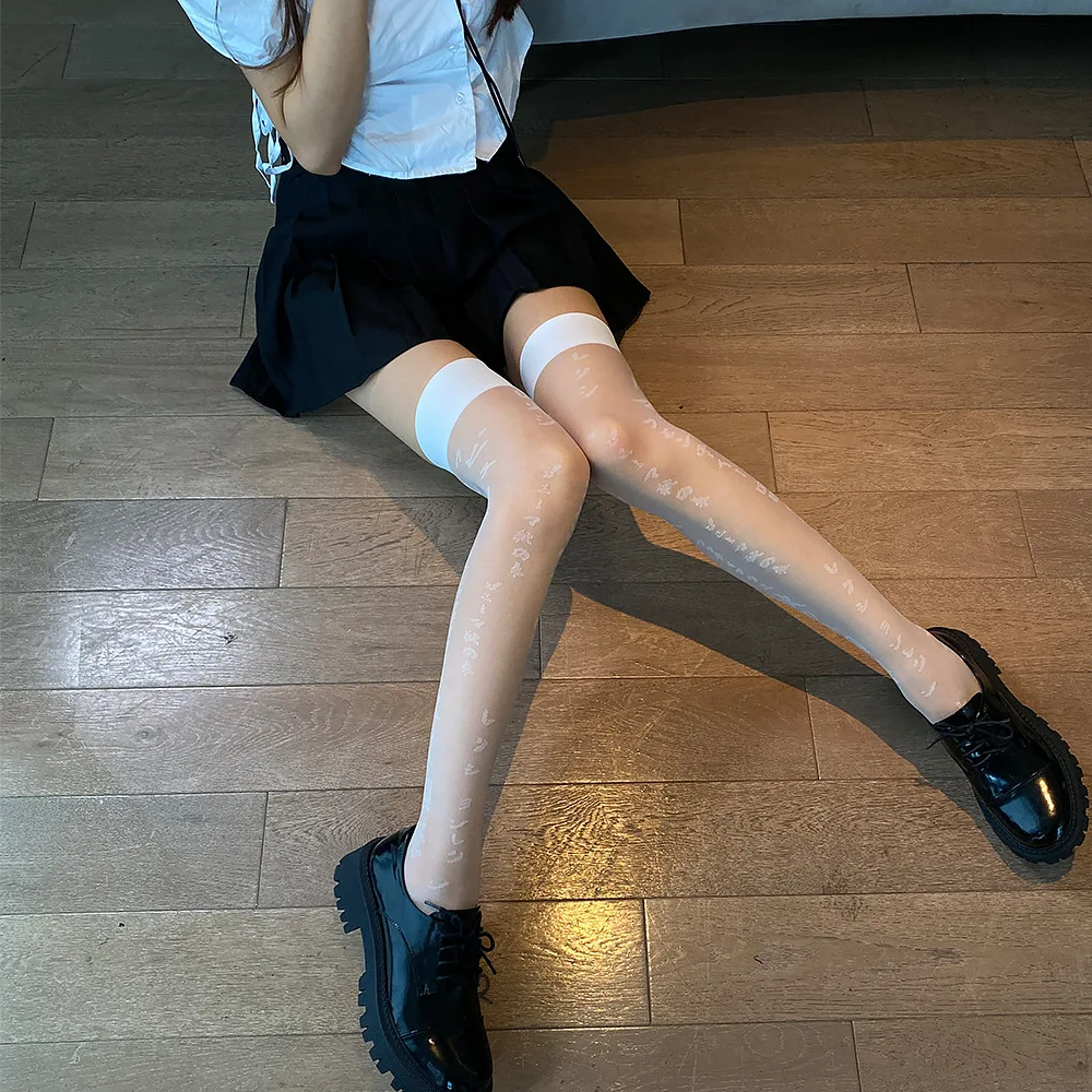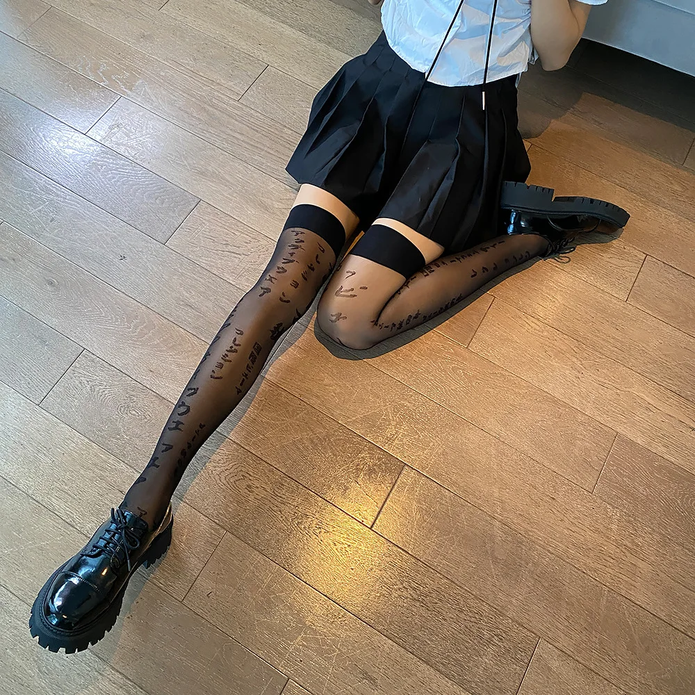 Пикантные кружевные высокие чулки Harajuku в готическом стиле с японским буквенным принтом, в стиле лолита, женские тонкие милые узкие чулки для девушек и женщин, тонкие колготки JK в темноте