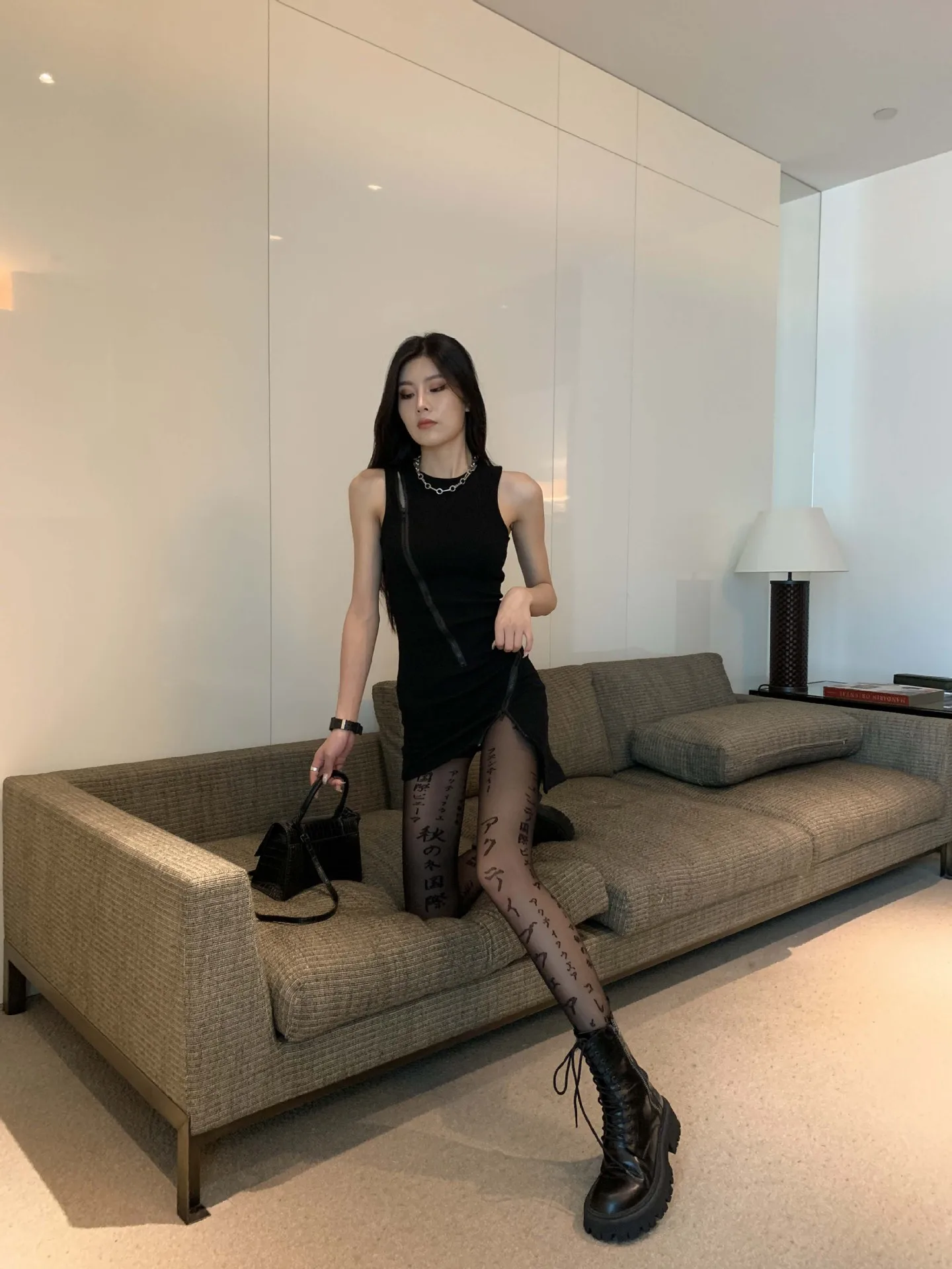 Пикантные японские черные колготки KASURE с буквенным принтом, колг...