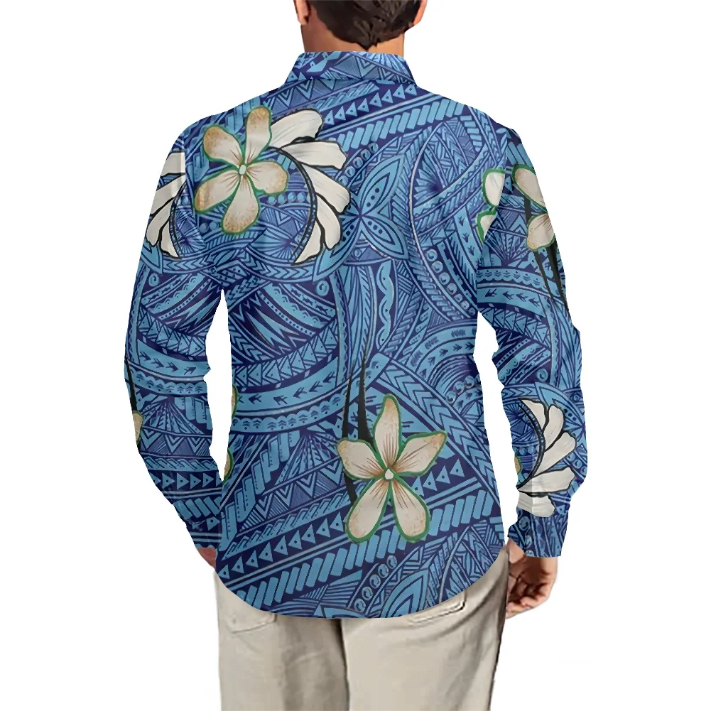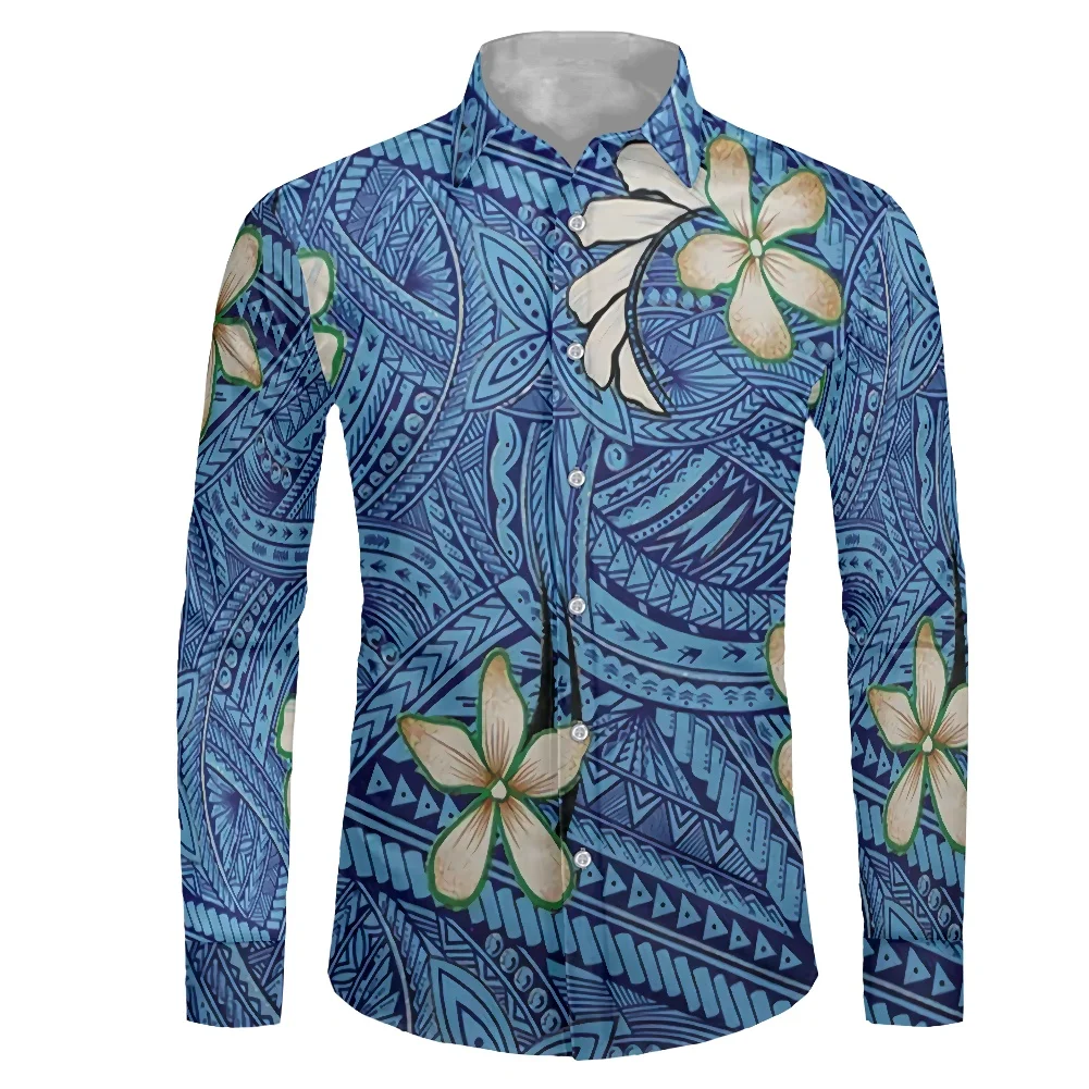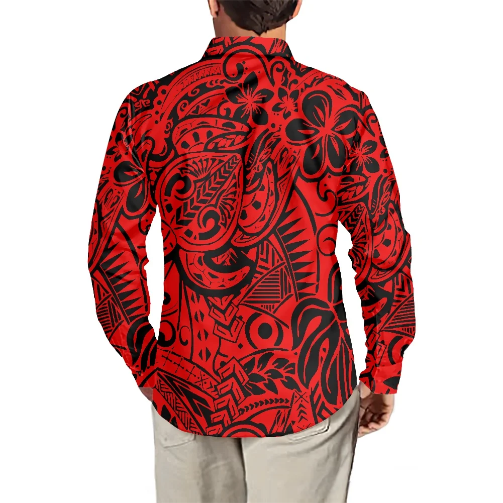 Крутая Мужская рубашка с длинным рукавом, индивидуальная уличная одежда, полинезийская традиция, племенной дизайн, мужская Тонкая рубашка с длинным рукавом
