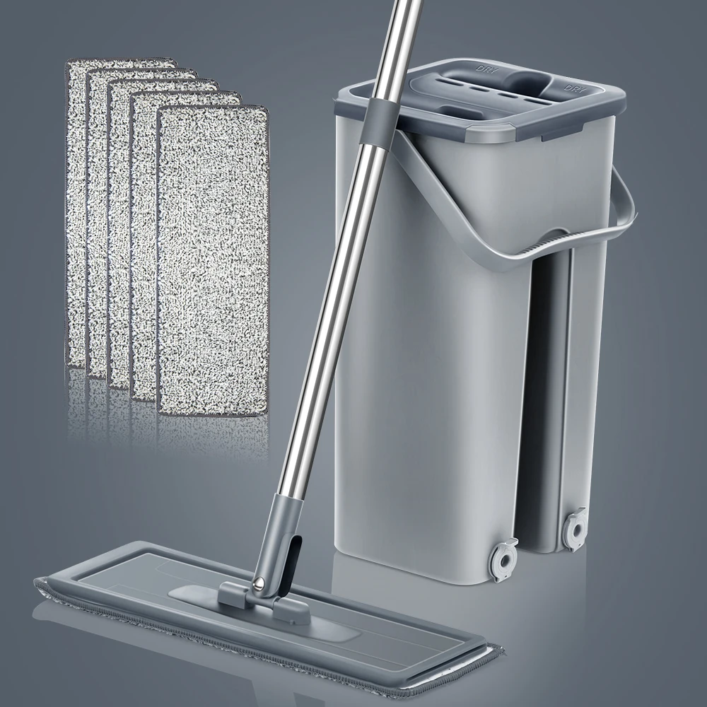 Швабра с ведром для мытья пола, профессиональная вращающаяся Швабра для дома, с моющимися вставками из микрофибры, для твердой древесины