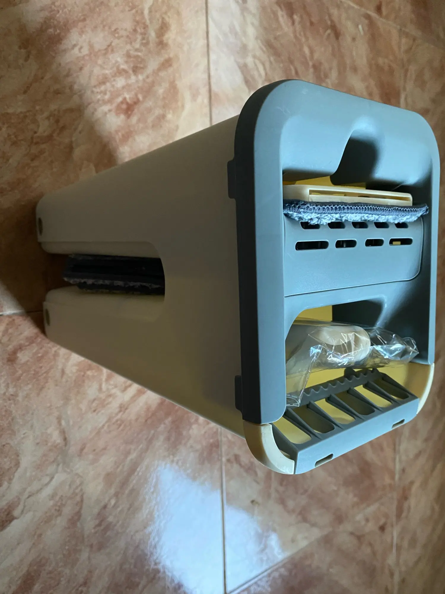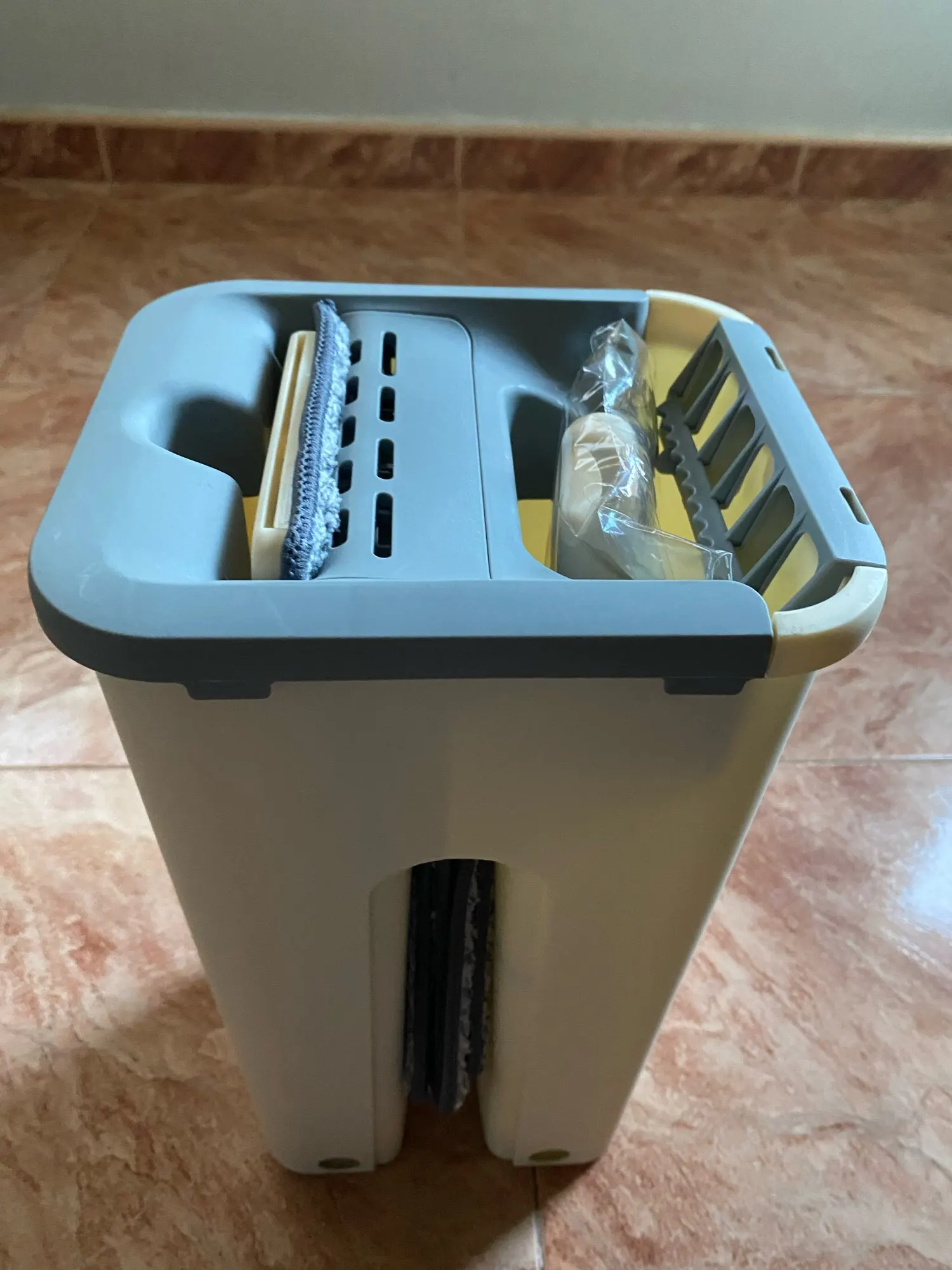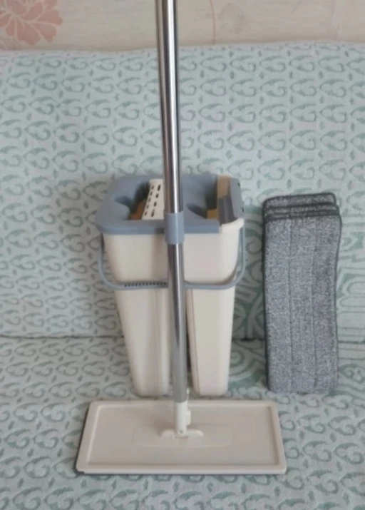 Это просто чудо! На первый взгляд ведро кажется каким то детским и не устойчивым, но это только кажется! Очень удобная техника отжима без использования рук, в комплекте 5 сменных насадок и плюс одна уже была на самой швабре. Очень легко и просто собирается. Рекомендую к покупке, не пожалеете.