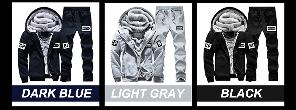 Мужской спортивный костюм с флисовой подкладкой, темно-синий спортивный костюм из толстовки с подкладкой и брюк, теплая верхняя одежда с капюшоном для зимы, 2019