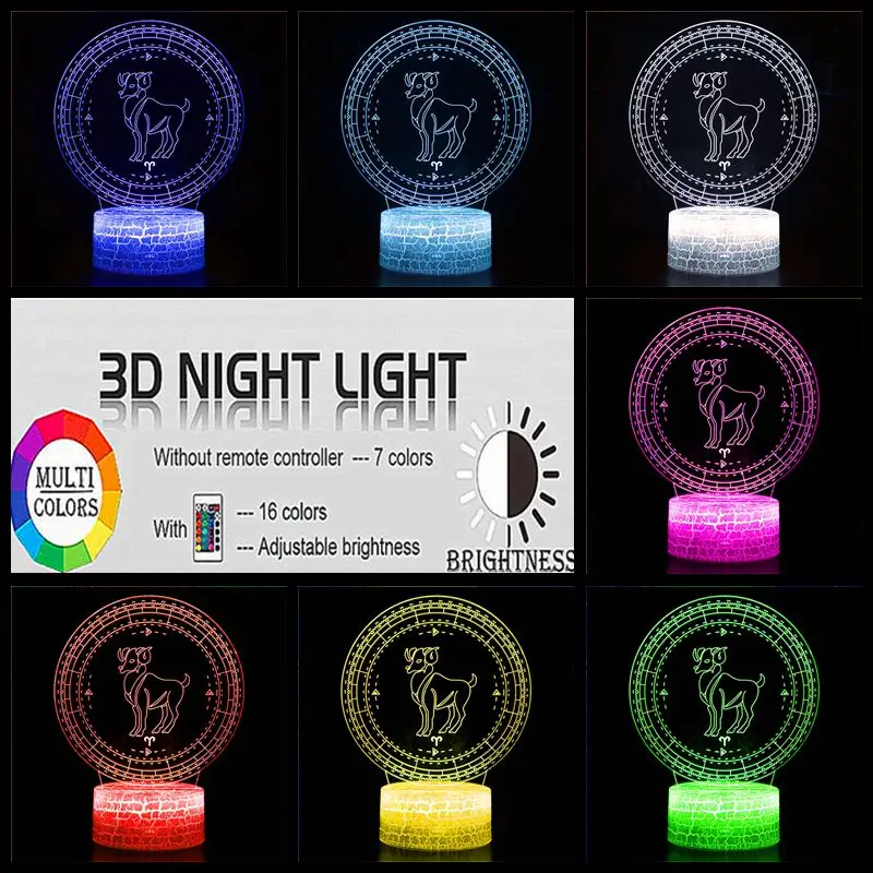 Светильник Овен 12 созвездий, гороскоп, гадания, цветной сенсорный пульт дистанционного управления 16 цветов подарок на день рождения светодиодный