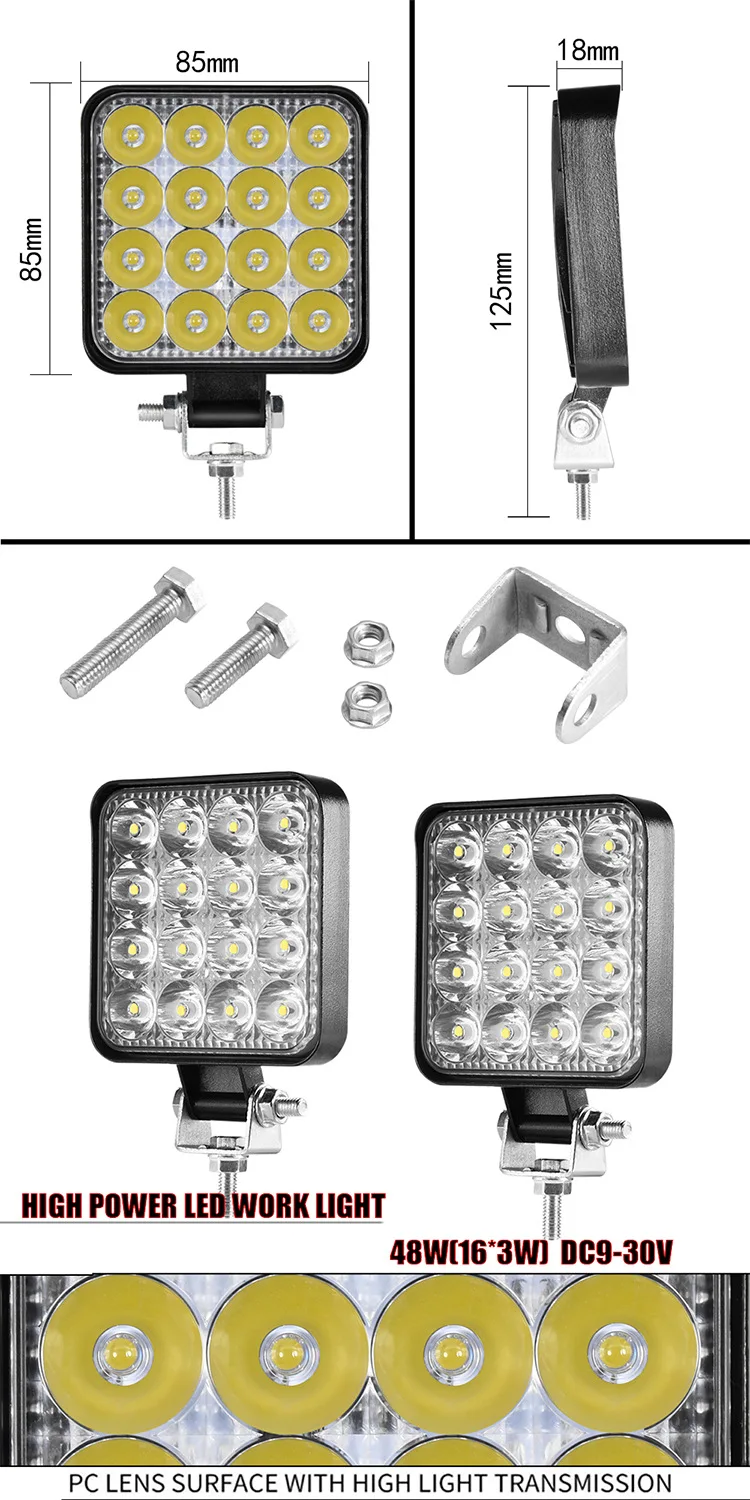 Мини-светодиодная лампа для бездорожья 48 Вт, квадратный прожсветил...