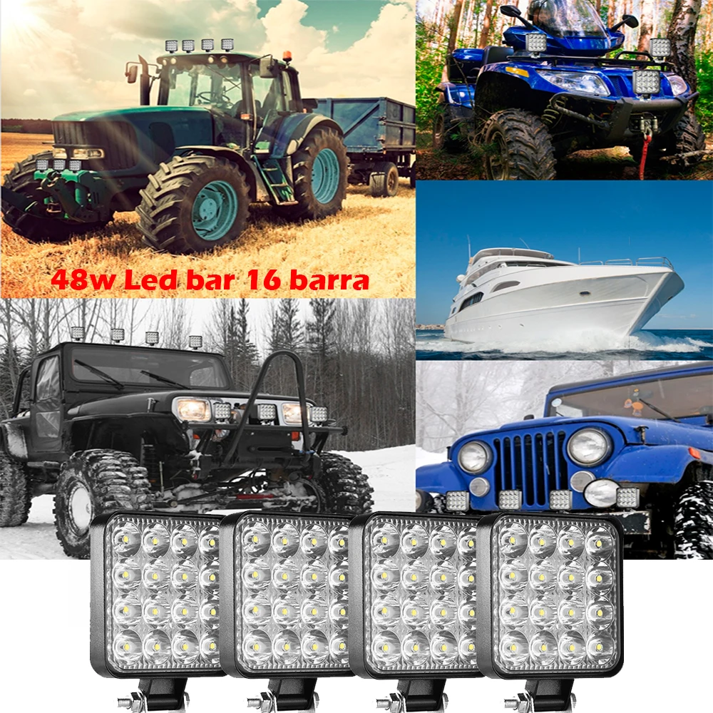 Светодиодная панель рабочего освещения для автомобиля, 12 В, 24 В, 48 Вт, Светодиодная панель 16 Барр, светильник для автомобиля 4x4, Светодиодная панель для внедорожников, кроссоверов, квадроциклов, тракторов, лодок, грузовиков, экскаваторов