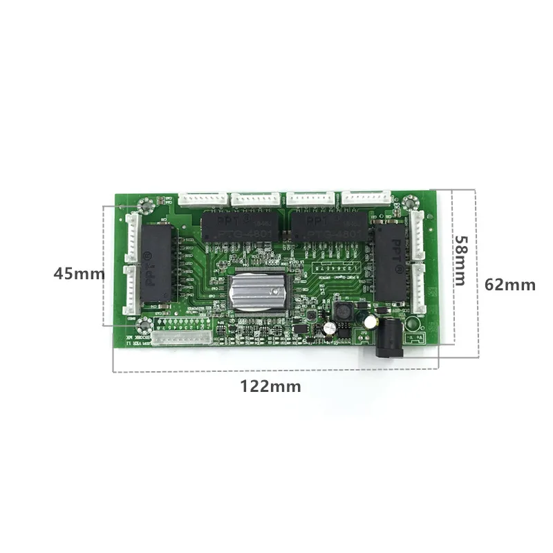 OEM PBC 8-портовый гигабитный коммутатор Ethernet, 8 портов с 8-контактным ходовым разъемом, концентратор 101001000 м, 8-контактный разъем питания, печатная плата, OEM винтовое отверстие