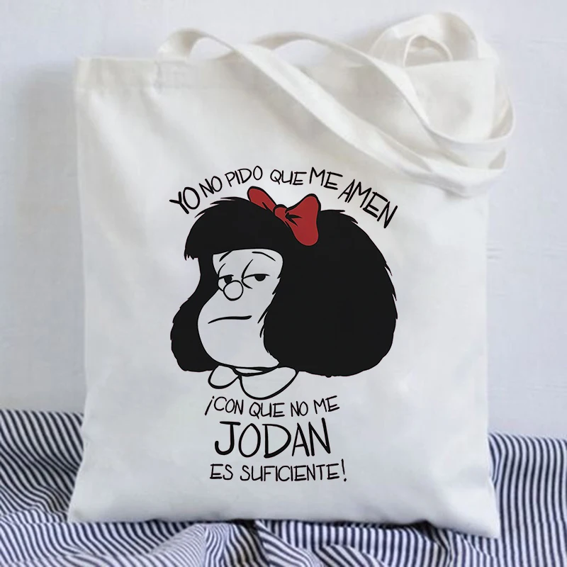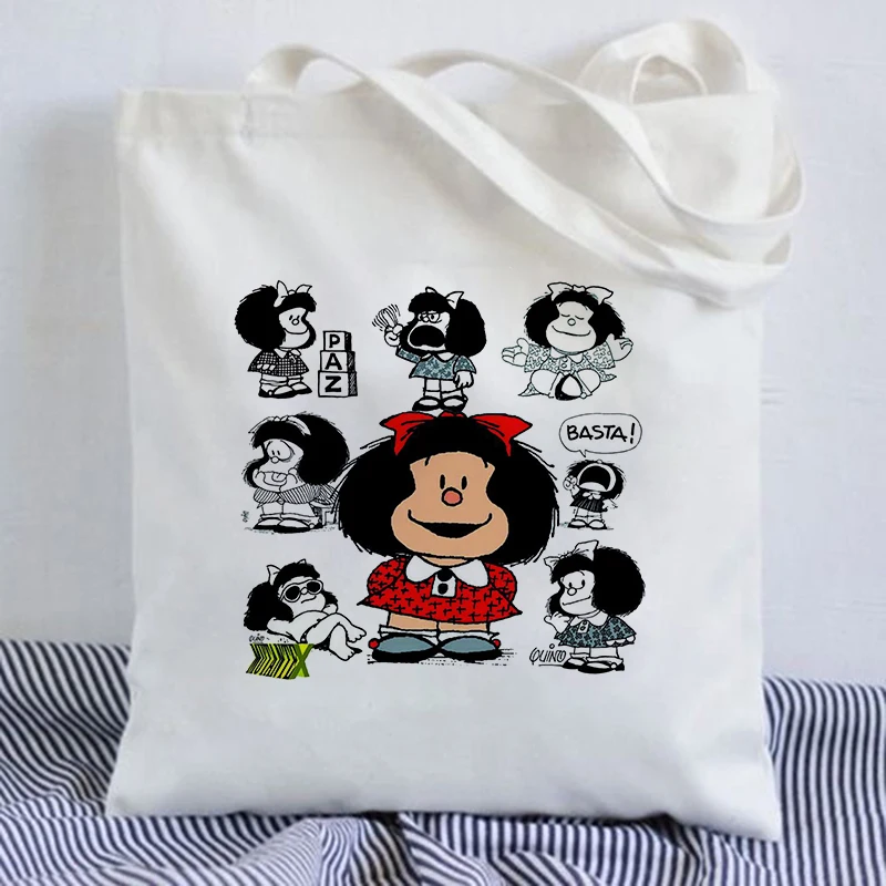 Mafalda сумки для покупок с принтом, сумка для покупок, сумка для покупок, сумка на плечо, холщовые сумки большой вместимости, сумка для колледжа, Прямая поставка