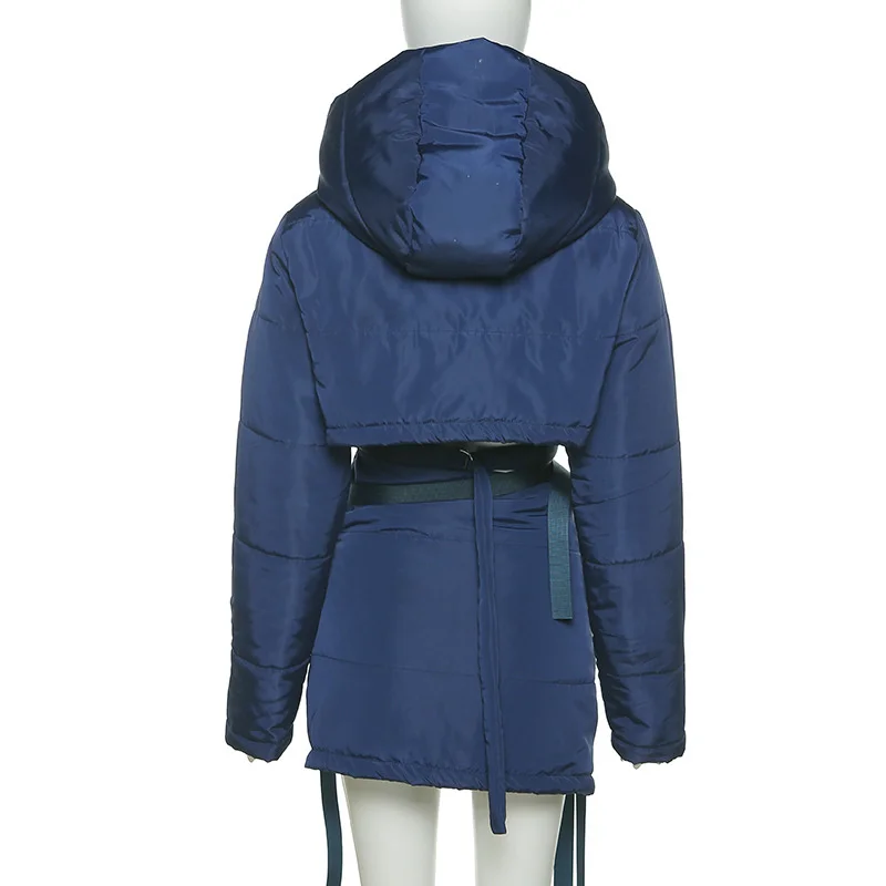Женская однобортная парка на шнуровке, с капюшоном, на осеньзиму
