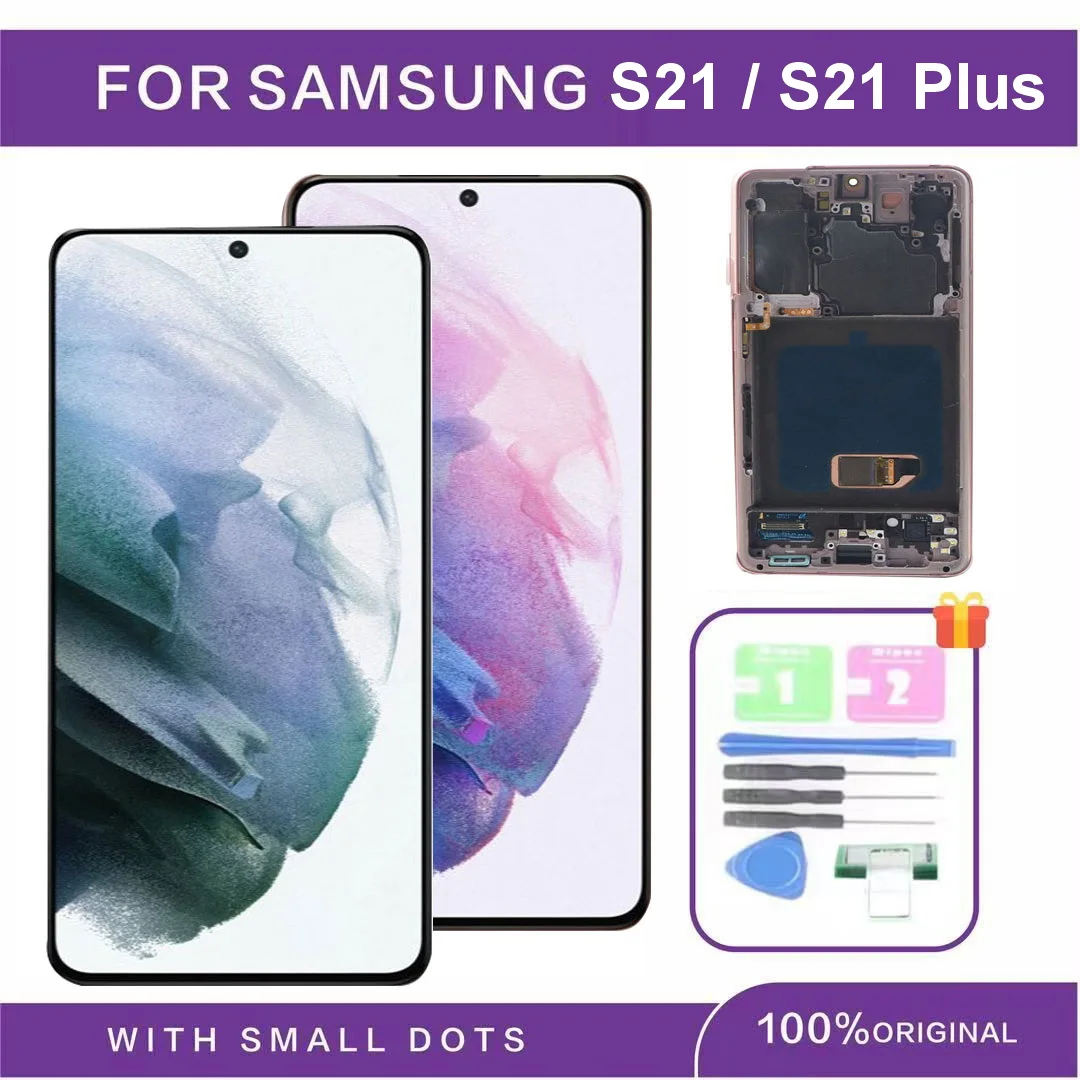100% Оригинальный AMOLED для Samsung Galaxy S21 lcd S21 Plus ЖК-дисплей сенсорный экран в сборе с точками