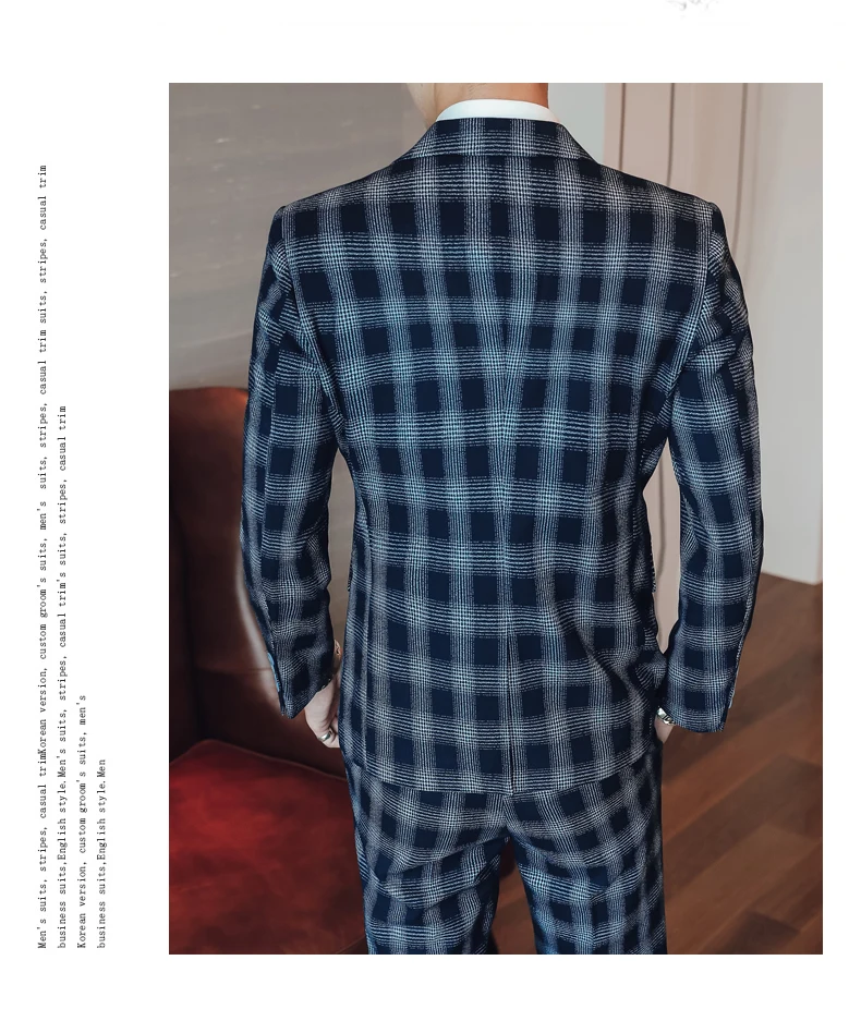 Пиджак, жилет, брюки, роскошный, в клетку, для жениха, свадебный ко...
