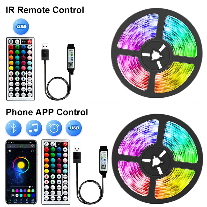 Водонепроницаемая светодиодная RGB лента для украшения спальни, подсветки телевизора, 5 В, Bluetooth, 1-30 м, 5050 лампочек, 12 В постоянного тока