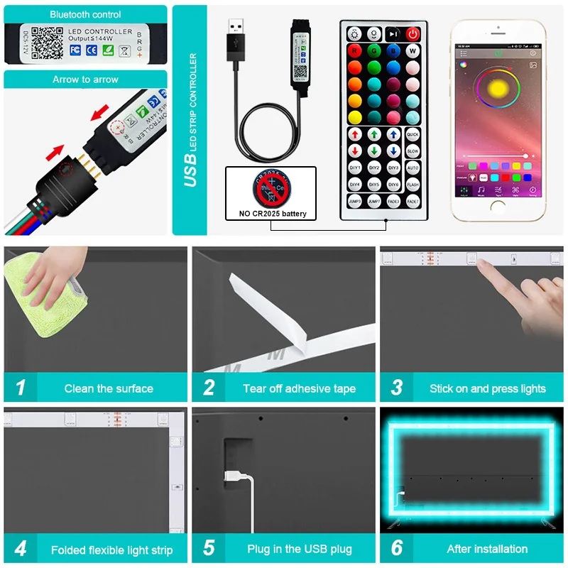 Светодиодная лента 5050 с поддержкой Bluetooth, USB, SMD, 5 В, RGB,...