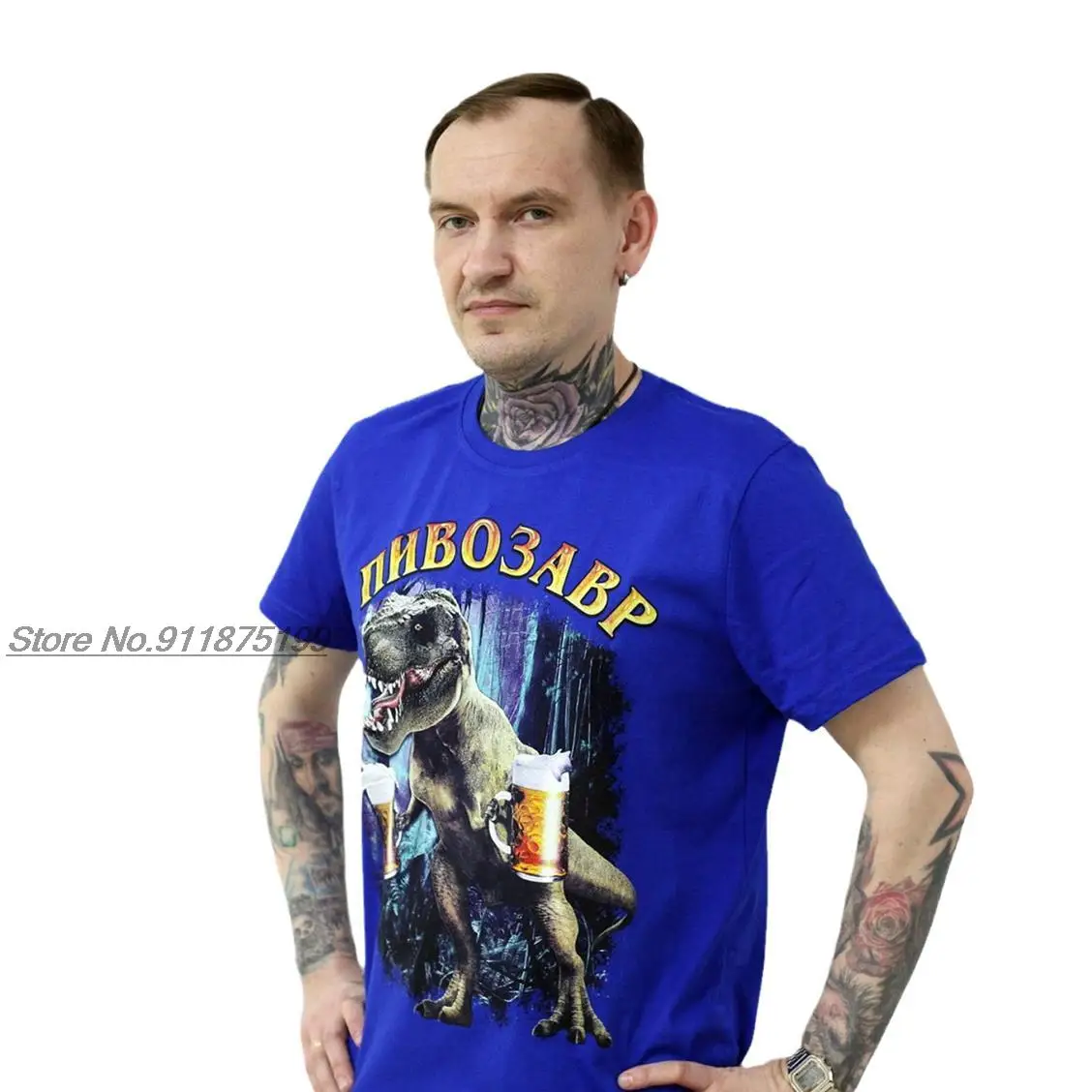 Летняя Мягкая футболка из бутика, Мужская футболка с принтом пивозавра, крутая футболка, известная повседневная мужская хлопковая одежда, рубашка пивозавра