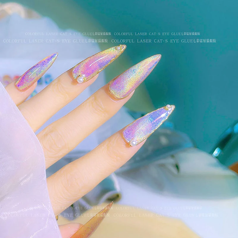 Характеристики продукта: различные Базовые цвета и различные формы ногтей будут иметь различные эффекты, различные углы покажут различные голографические и кошачьи глаза эффекты. Простой в использовании, экологически чистые ингредиенты, низкий запах, нетоксичный, пожалуйста, не стесняйтесь использовать