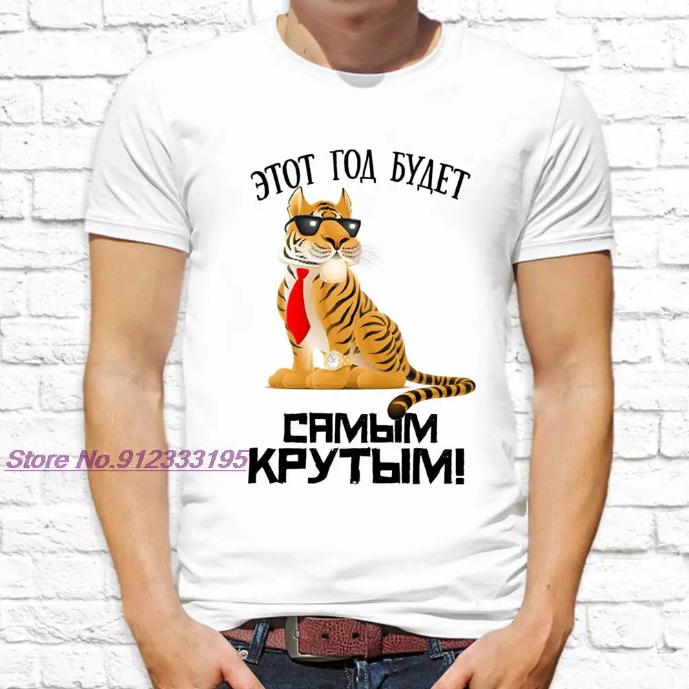 Мужская футболка на Новый год 2022, тигр, Санта-Клаус для фотосъемки, большой размер 3XL