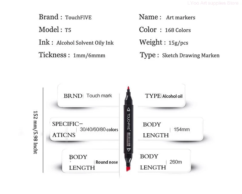 TOUCHFIVE 80 цветные маркеры манга маркеры для рисования набор на спиртовой основе Перманентный эскиз маркеры для художника студенческие товары для рукоделия