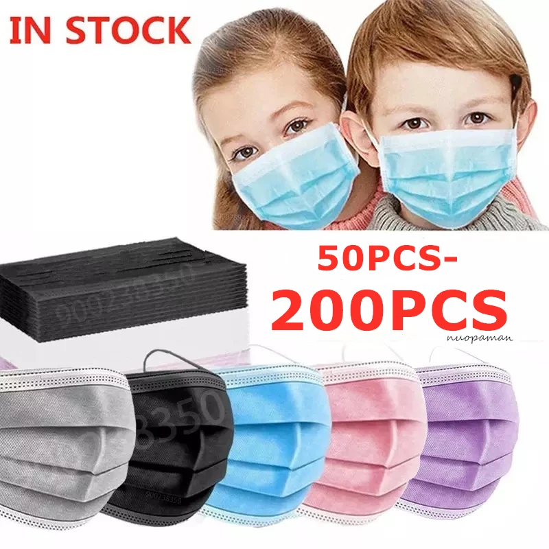 50 шт., одноразовые маски для детей и взрослых, 3 слоя