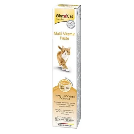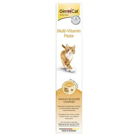 Кормовая добавка предназначена для взрослых кошек всех пород. Паста GimCat Multi-Vitamin Paste содержит уникальный комплекс 3-в-1, в который входит 12 витаминов, бета-глюкан и масла, которые оказывают комплексное укрепляющее воздействие на иммунную систему кошки.