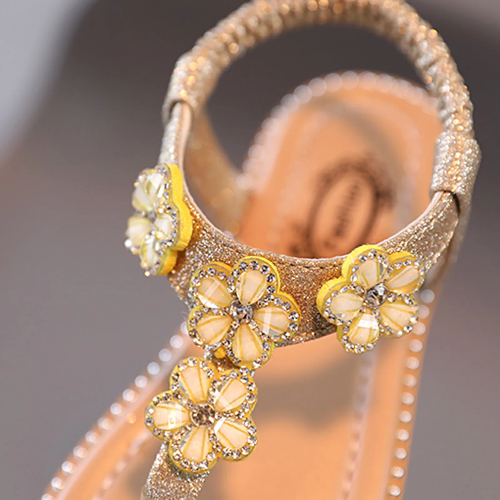 Детская пляжная обувь новые летние сандалии для девочек, украшенные кристаллами и цветами, модные сандалии принцессы Вьетнамки, Sandale Fille, 21-30