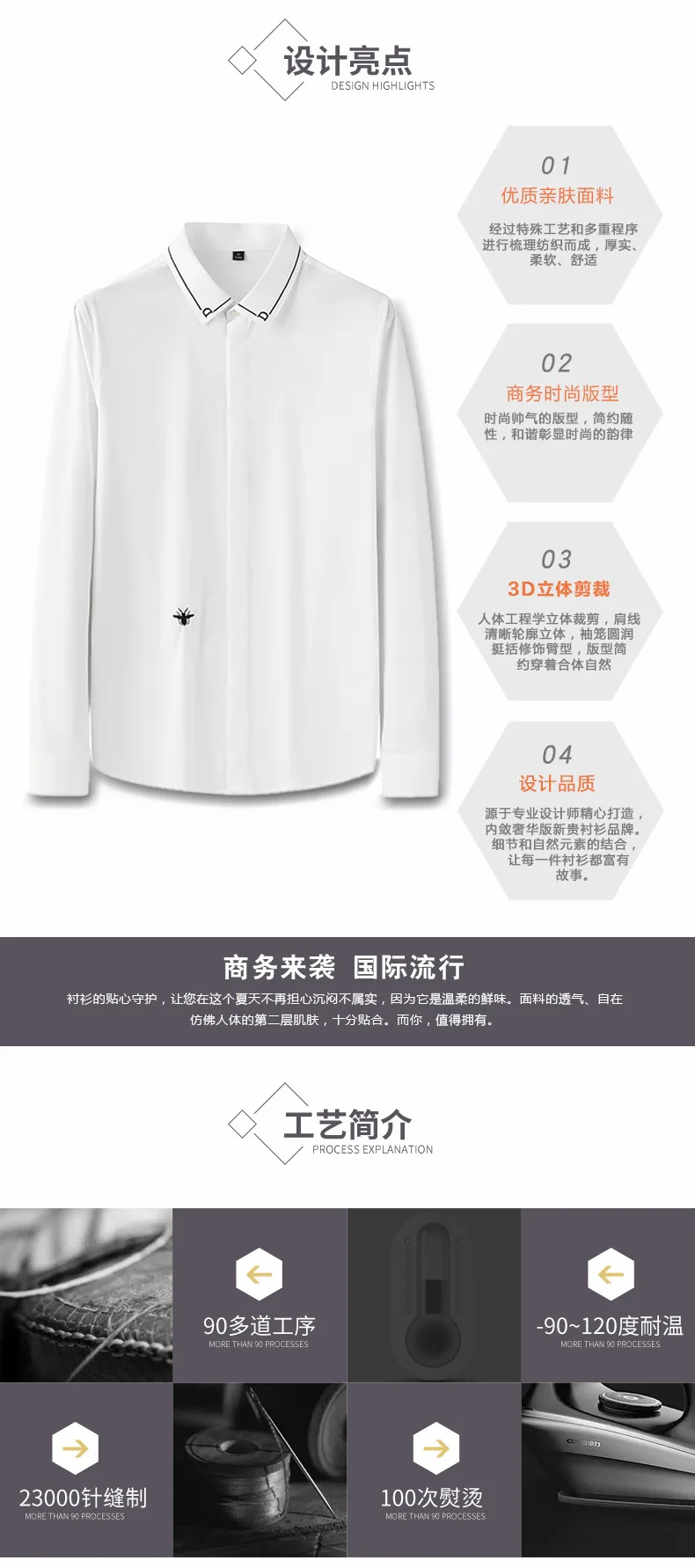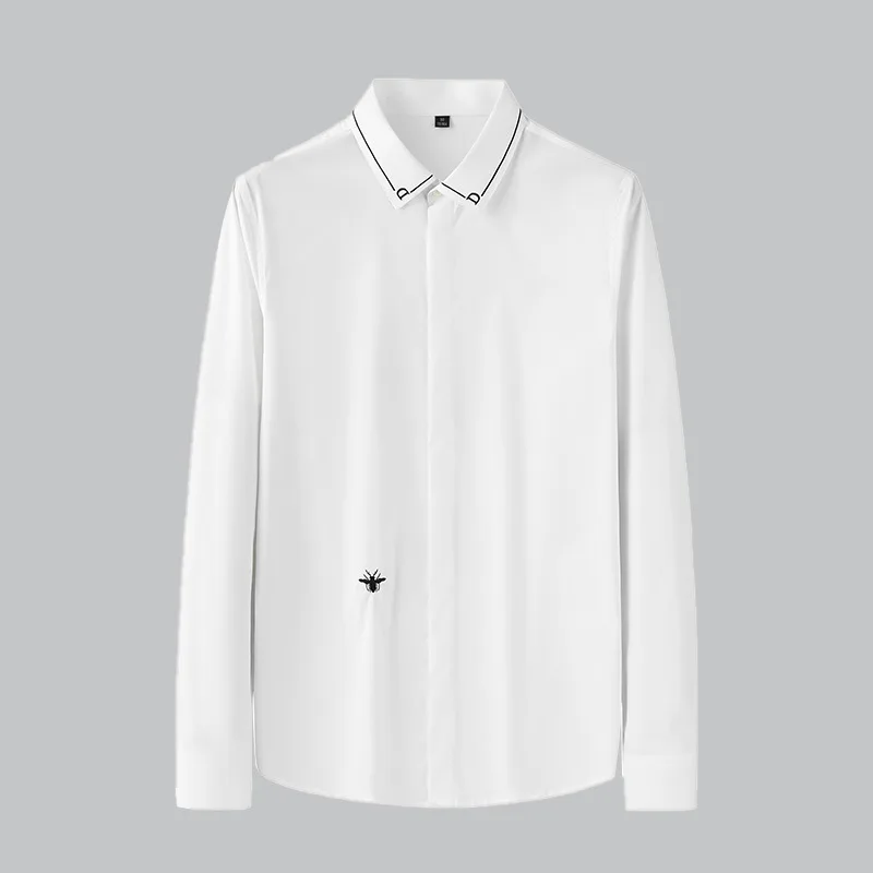 Новинка Осень-зима 2021, не требует глажки, Высококачественная однотонная мужская рубашка с длинными рукавами и вышивкой, универсальная однотонная белая мужская рубашка