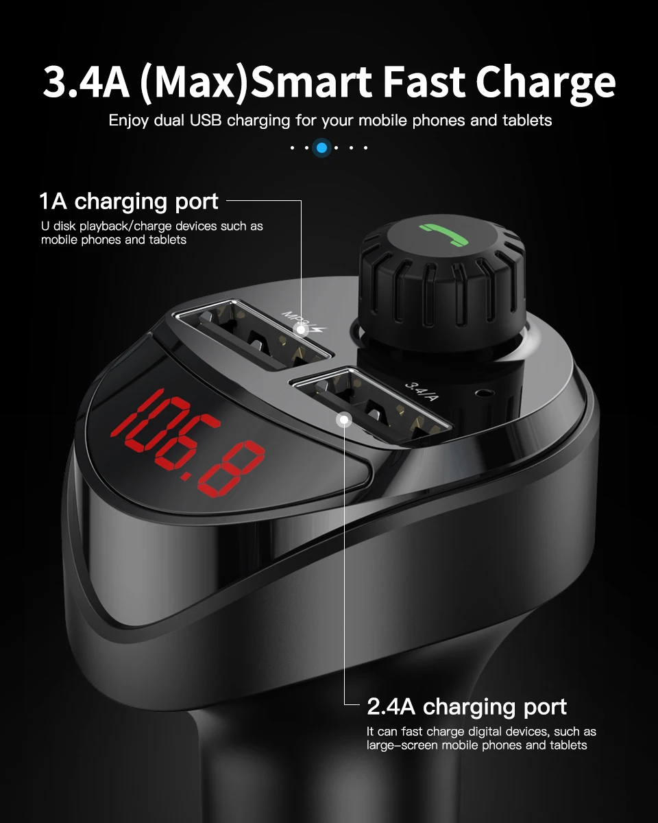 Function 3Battery Voltage Display, Multi-function Bluetooth Car Charger