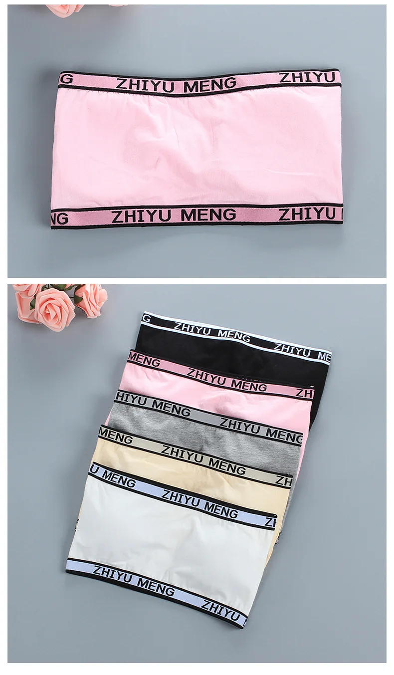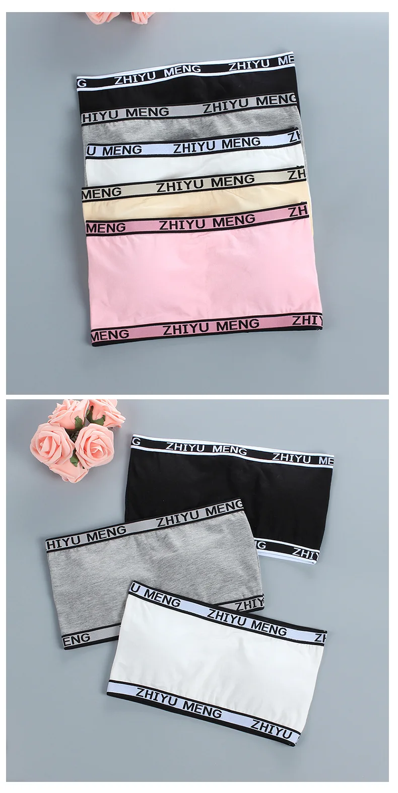 Топ-труба из чистого хлопка с буквами для девочек, без бретелек, для учащихся младшей и старшей школы, жилет, нижнее белье, спортивный бюстгальтер
