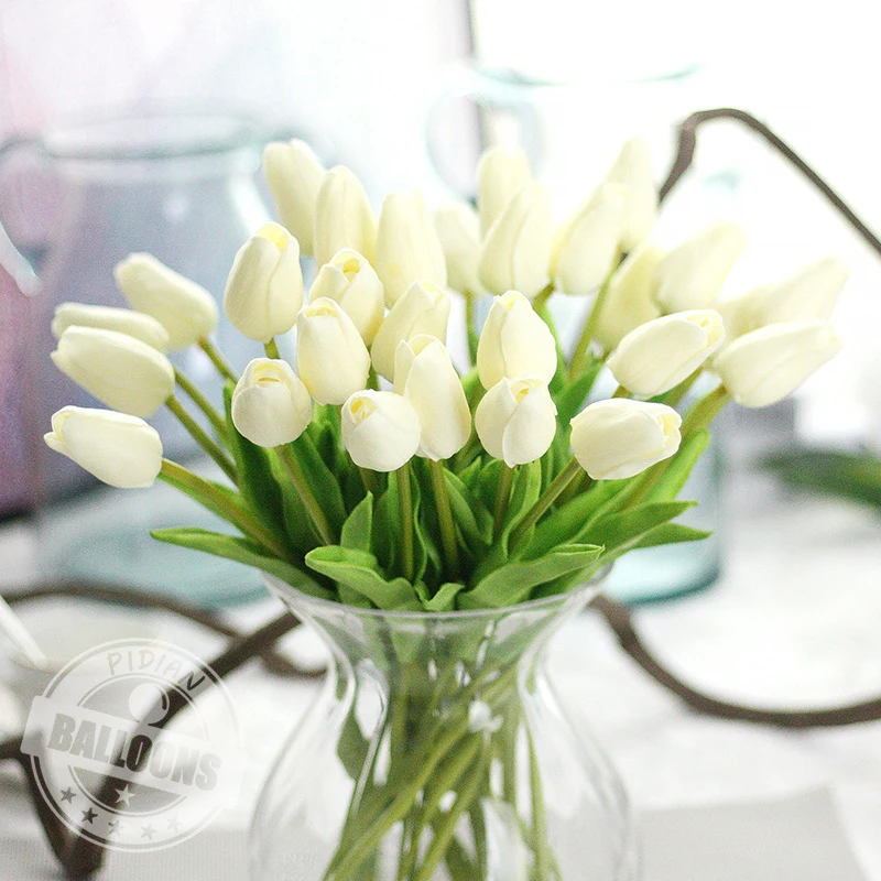 30 шт. ПУ-тюльпаны искусственные шелковые цветы настоящие цветные A...
