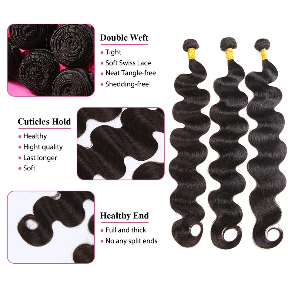 BAHW волнистые пряди с закрытием бразильские волосы плетение 3 пряди с закрытием натуральные человеческие волосы 30 дюймов Пряди с закрытием