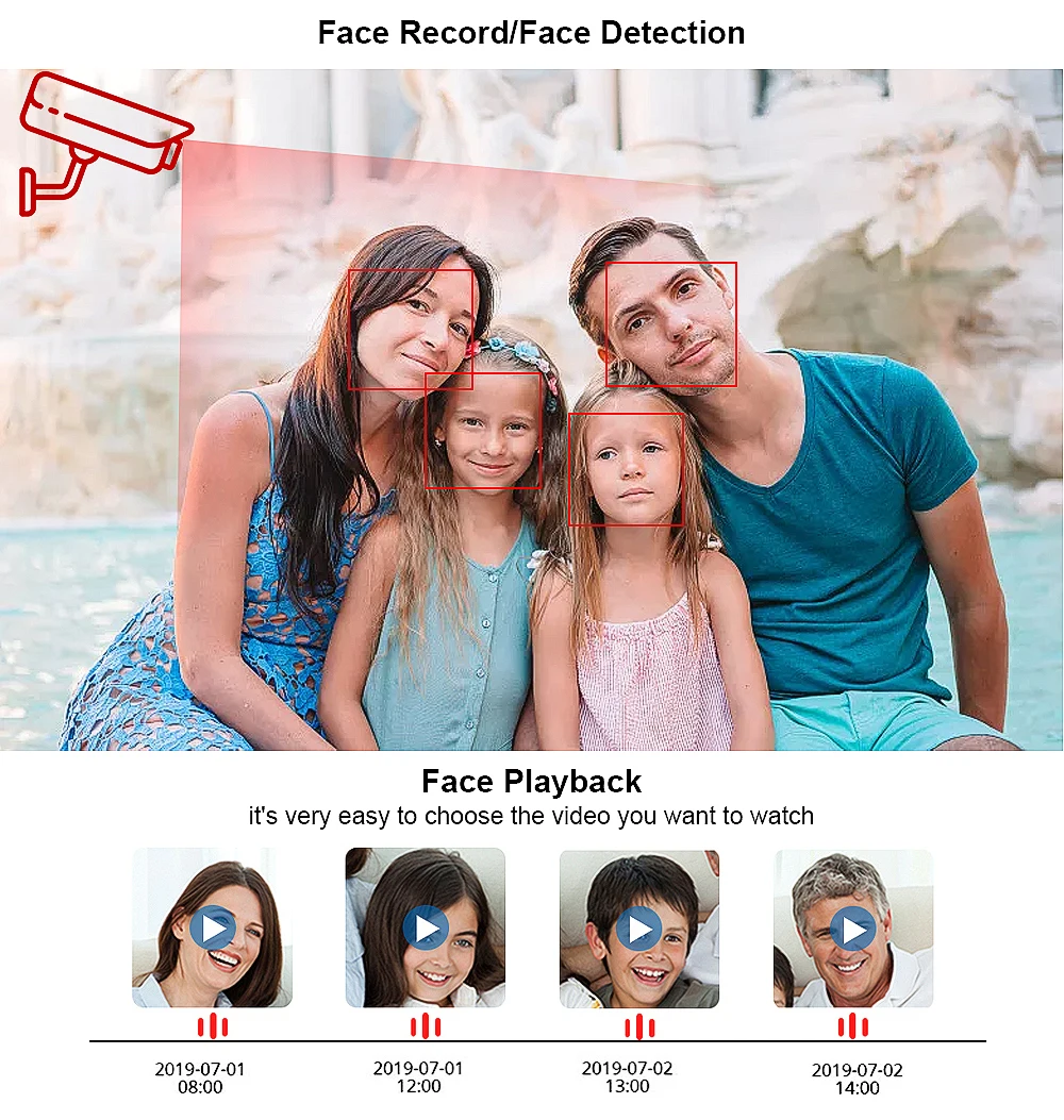 Обнаружение лица, воспроизведение лица и запись лица; Быстрое снятие изображений лица и быстрое воспроизведение видео лица; Распознавание лица: автоматическое снятие изображений лица; Интеллектуальное воспроизведение лица: интеллектуальное воспроизведение видео лица, экономия времени, не пропустите все детали.