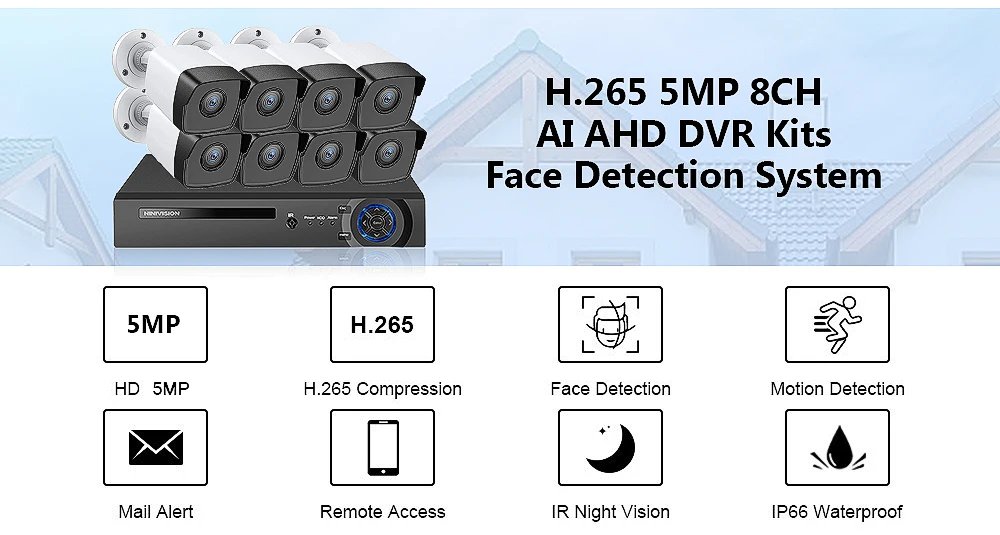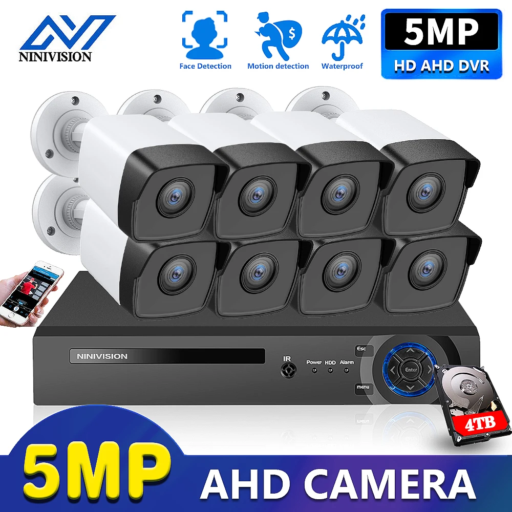 NINIVISION 5MP AHD камера видео система безопасности 8CH CCTV комплект Открытый водонепроницаемый DVR камера наблюдения камера набор 8 каналов XMEYE H.265