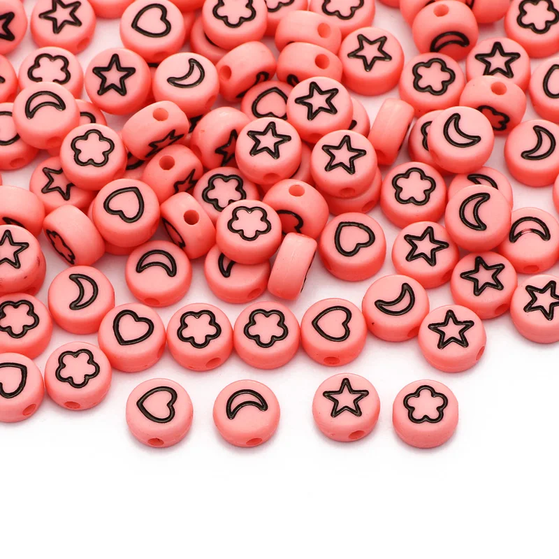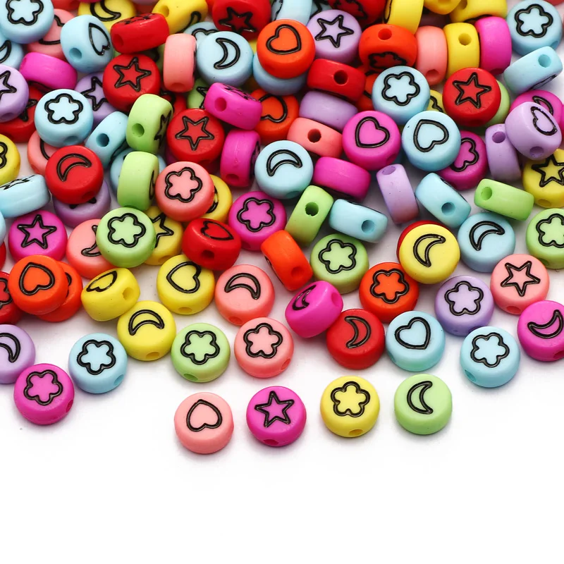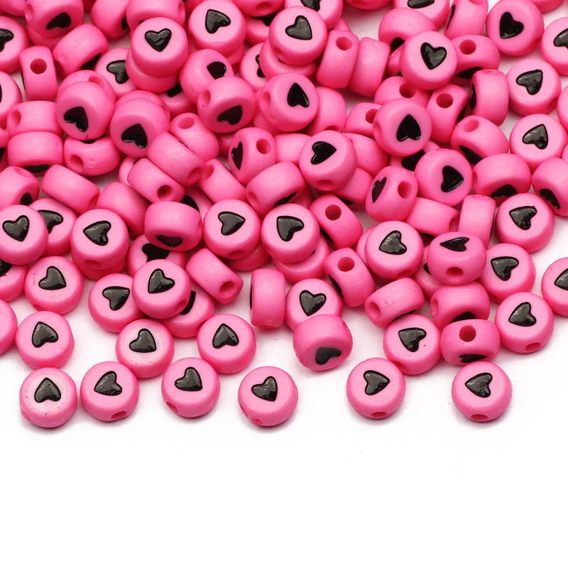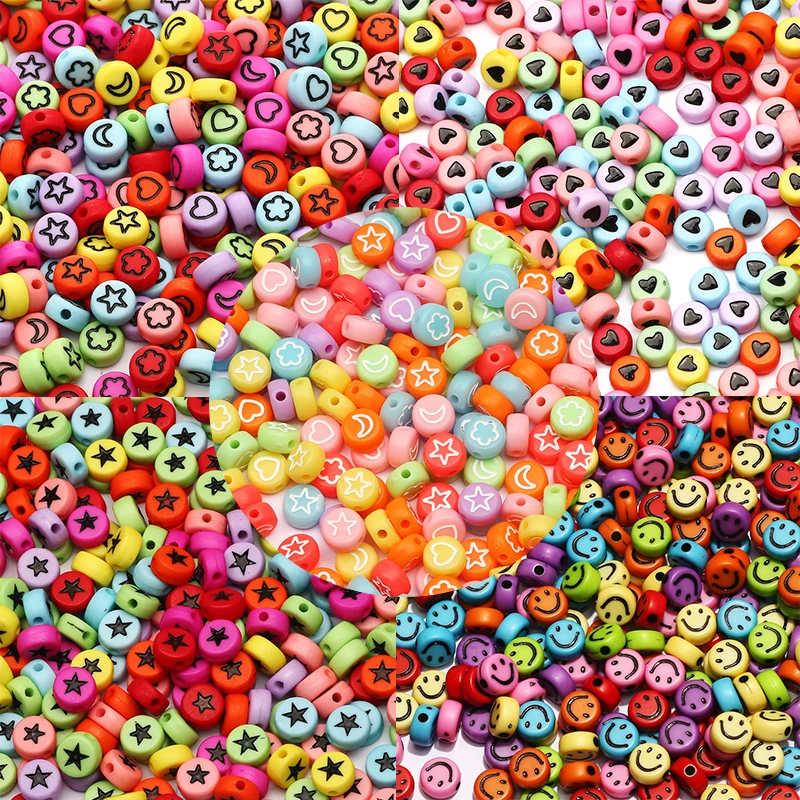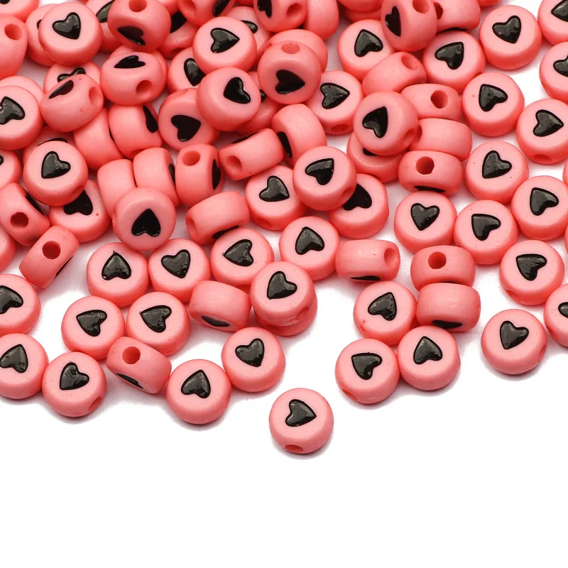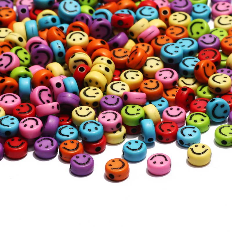 Акриловые бусины 4x7 мм, узорные сердца со смайликом, свободные бусины для изготовления ювелирных изделий сделай сам, для самостоятельного изготовления серег, ожерелий, браслетов, аксессуары